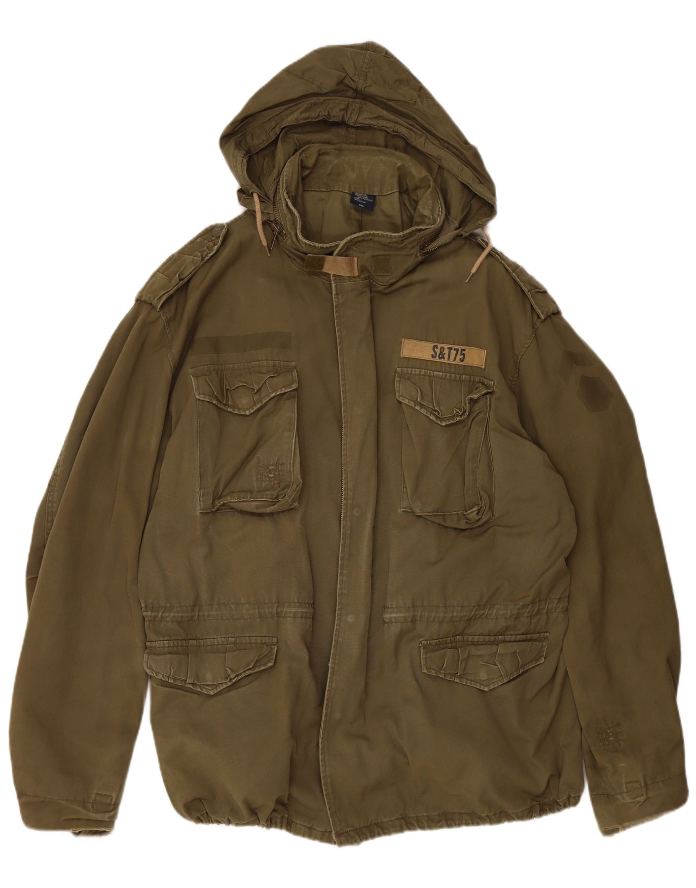 Giacca militare con cappuccio da uomo VINTAGE UK 44 2XL cotone kaki