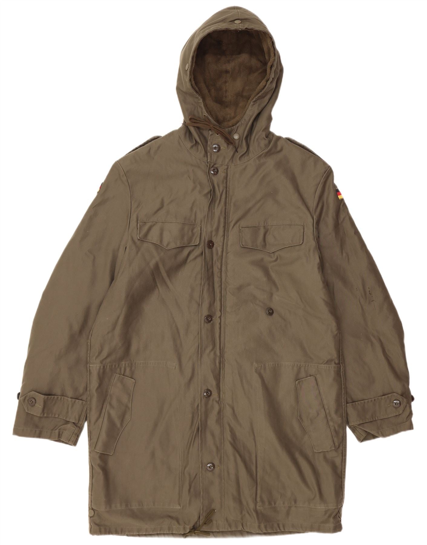 Giacca parka militare con cappuccio vintage da uomo UK 38 medio cachi
