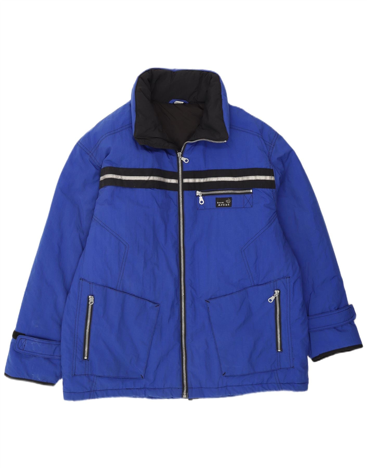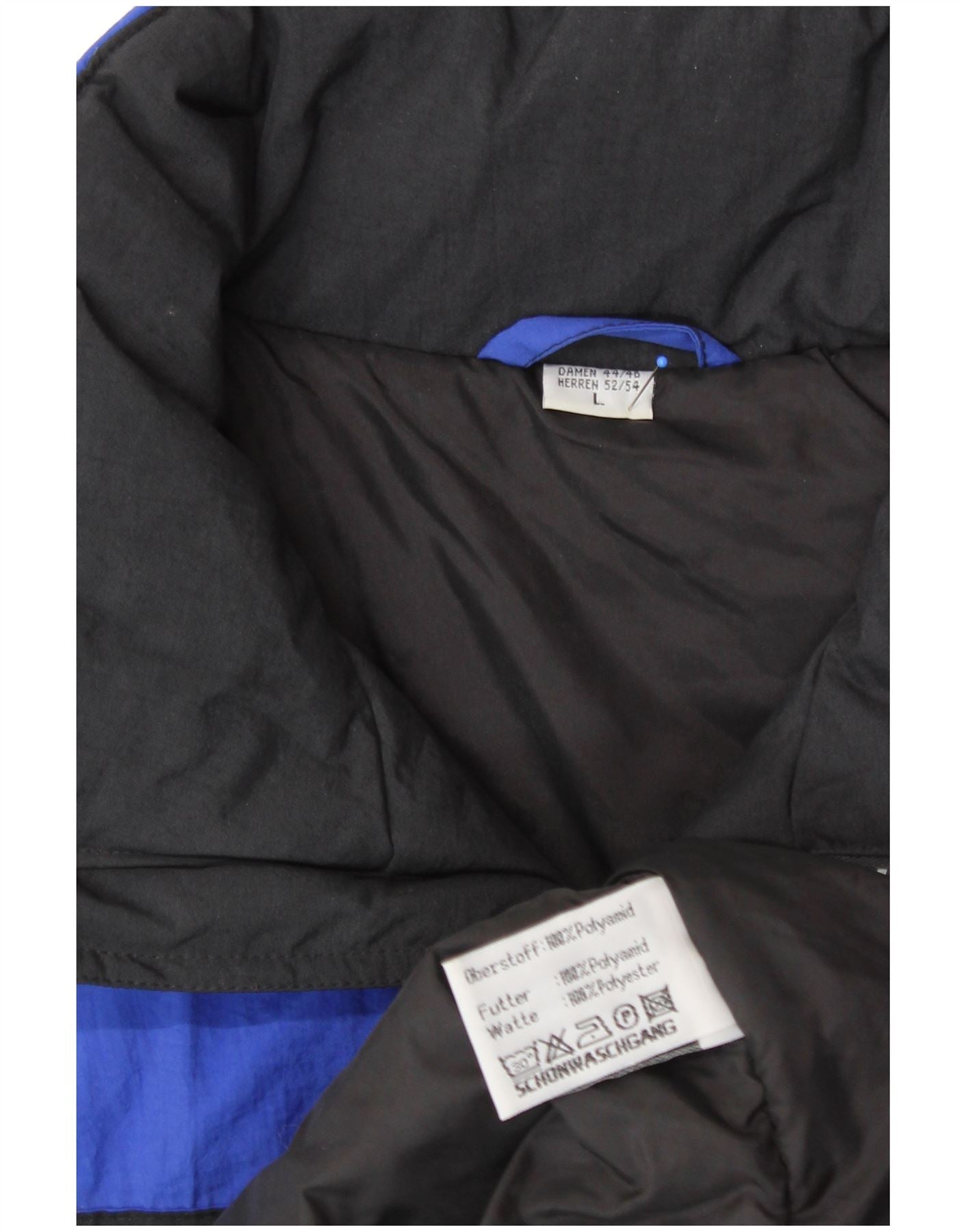 Giacca da sci con cappuccio da uomo VINTAGE UK 40 Large Blu in poliammide