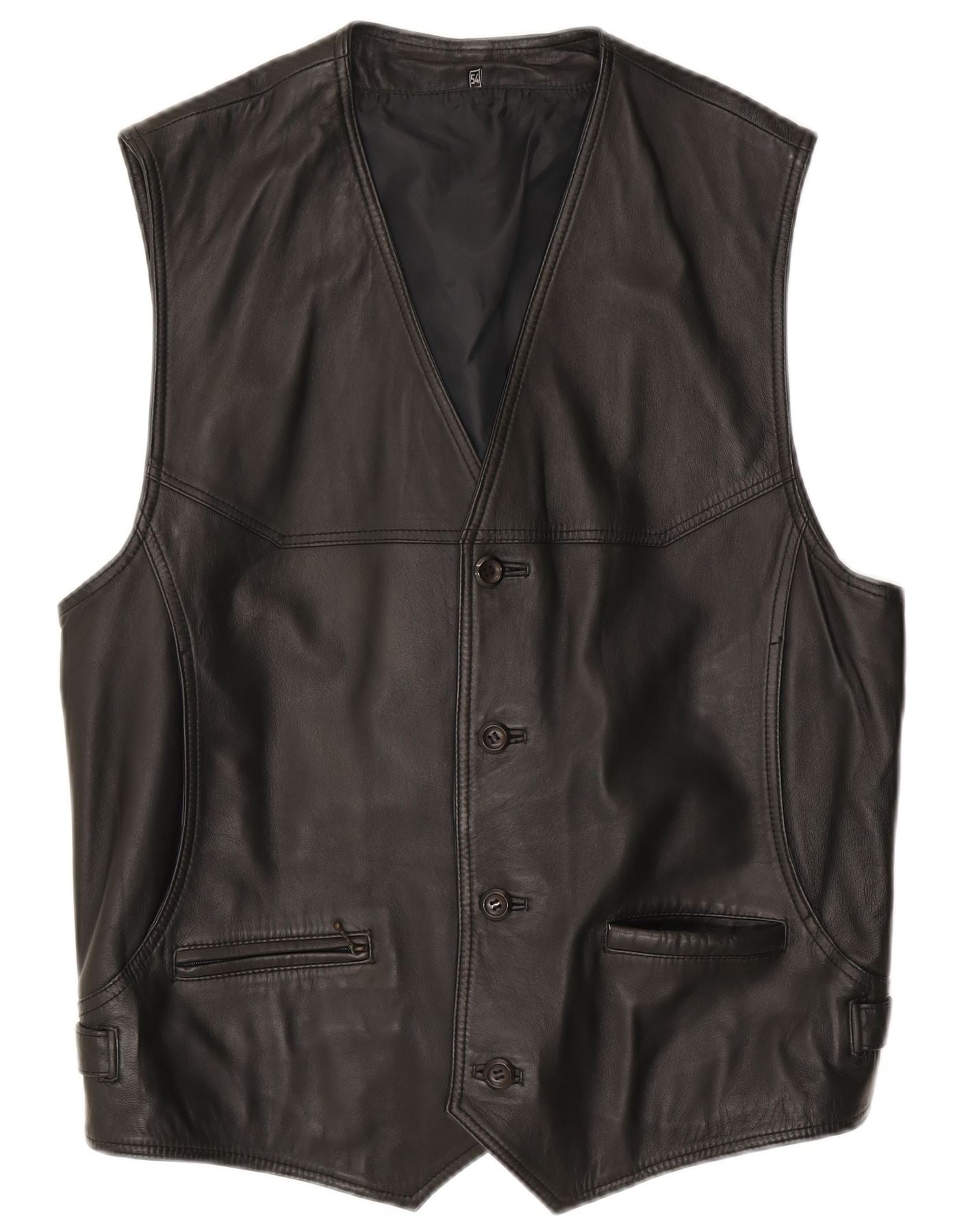 Gilet in pelle da uomo vintage IT 54 2XL Pelle nera