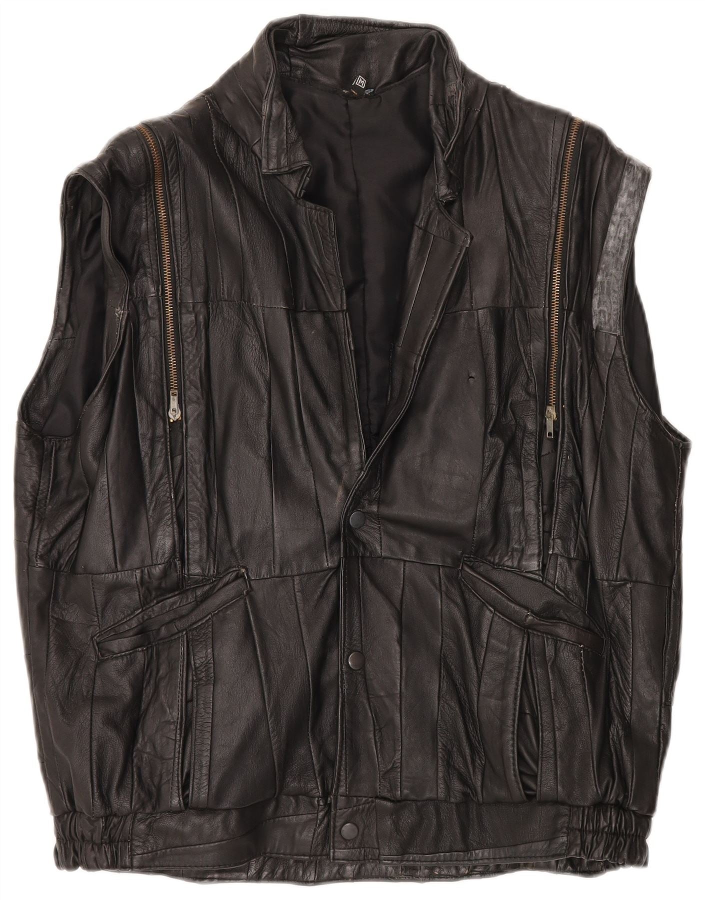 Gilet in pelle da uomo VINTAGE UK 38 Patchwork medio nero