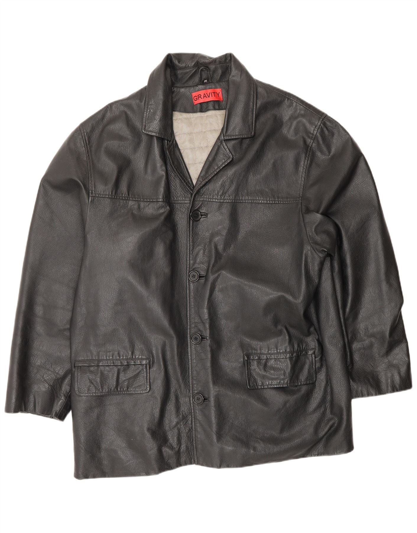 - Descrizione dell'IA: Questa giacca in pelle da uomo Gravity è realizzata al 100% in vera pelle nera. Presenta uno scollo classico con colletto e una chiusura frontale con bottoni. Le maniche lunghe offrono una copertura completa. La giacca include pratiche tasche ed è completamente foderata per il massimo comfort. La sua vestibilità regolare offre una silhouette senza tempo, perfetta per uno stile versatile. La ricca trama della pelle aggiunge un tocco sofisticato.
