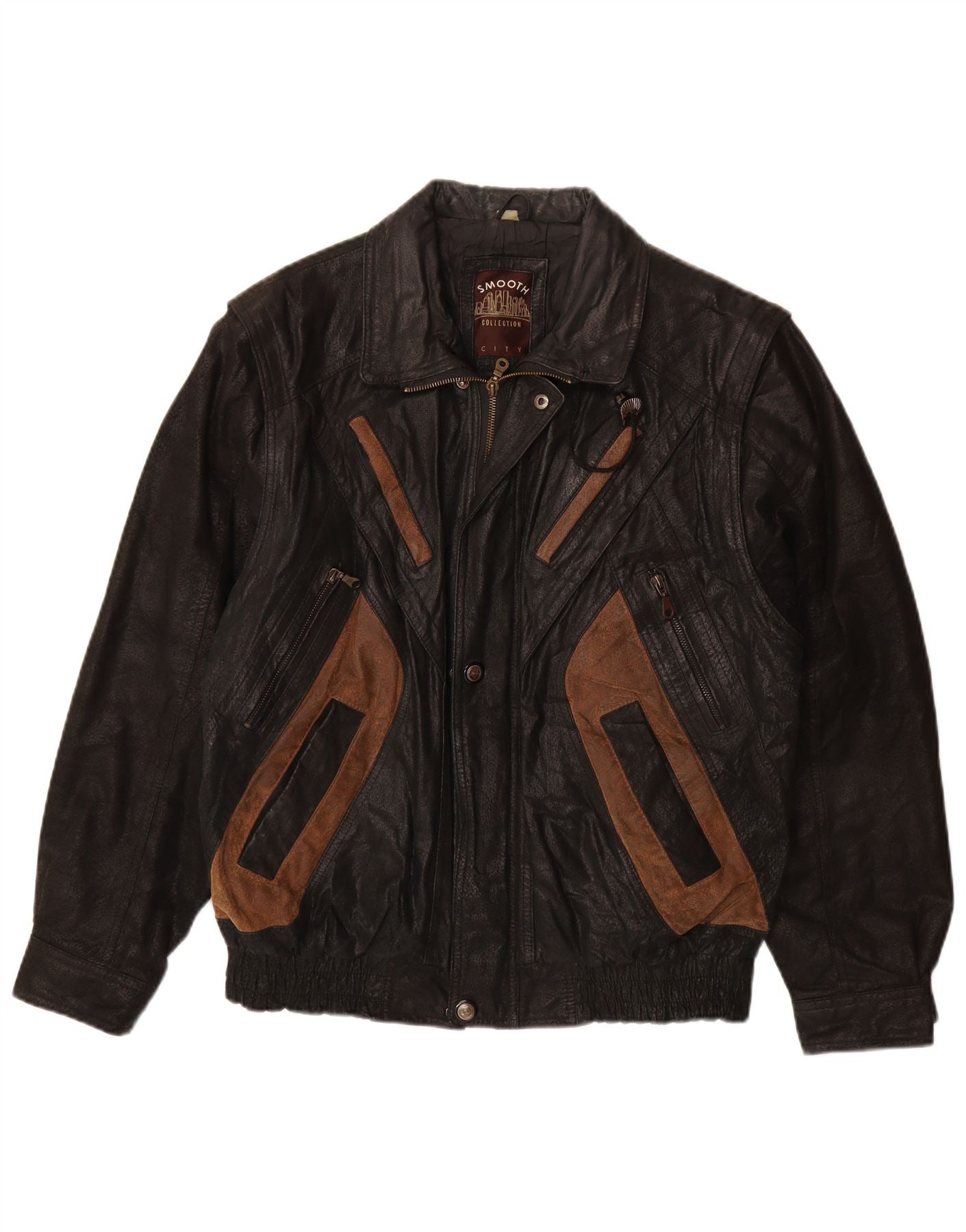 Giacca in pelle da uomo VINTAGE UK 40 Large in pelle nera color block