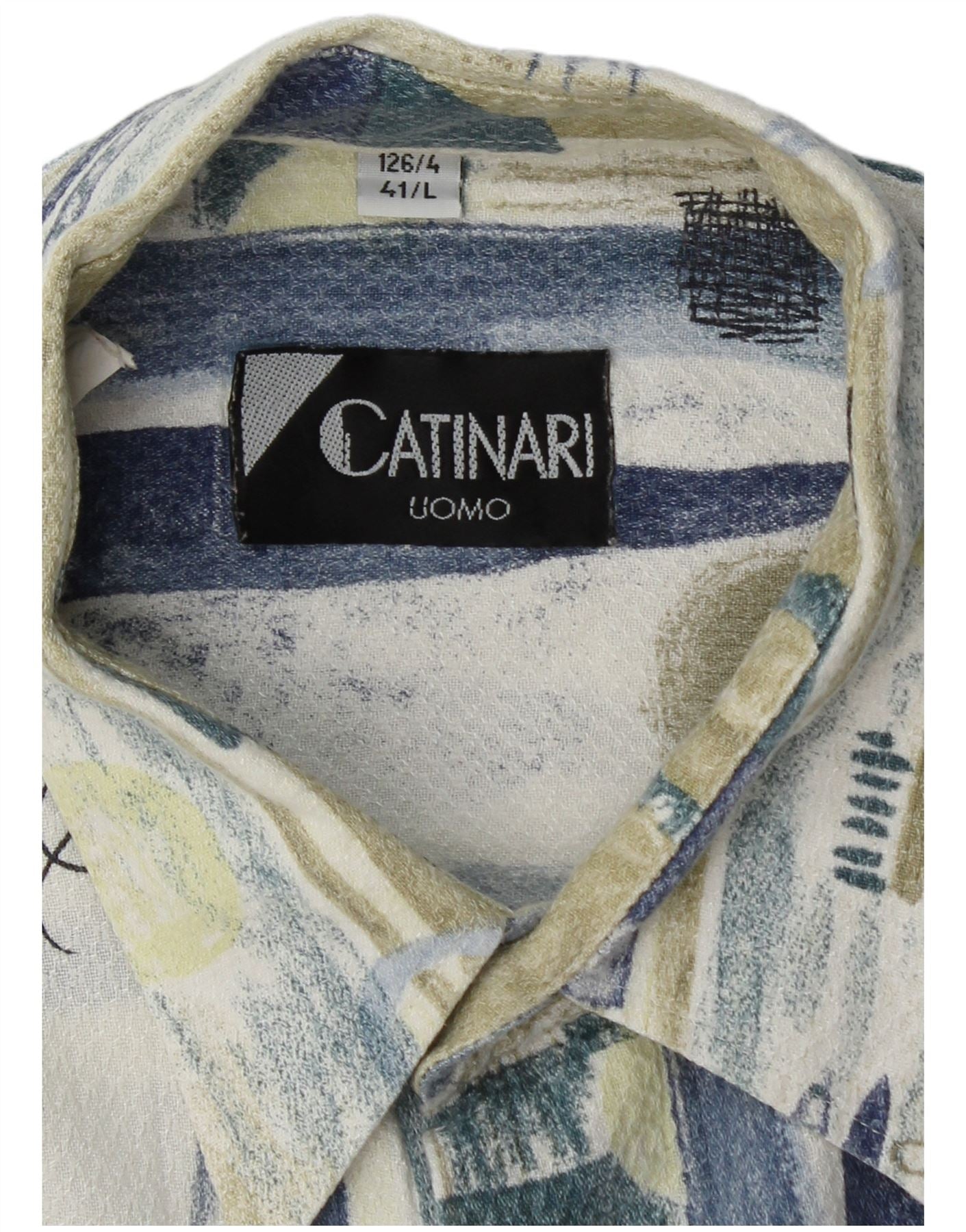 Camicia da uomo con motivo astratto lungo VINTAGE taglia 41 grande blu