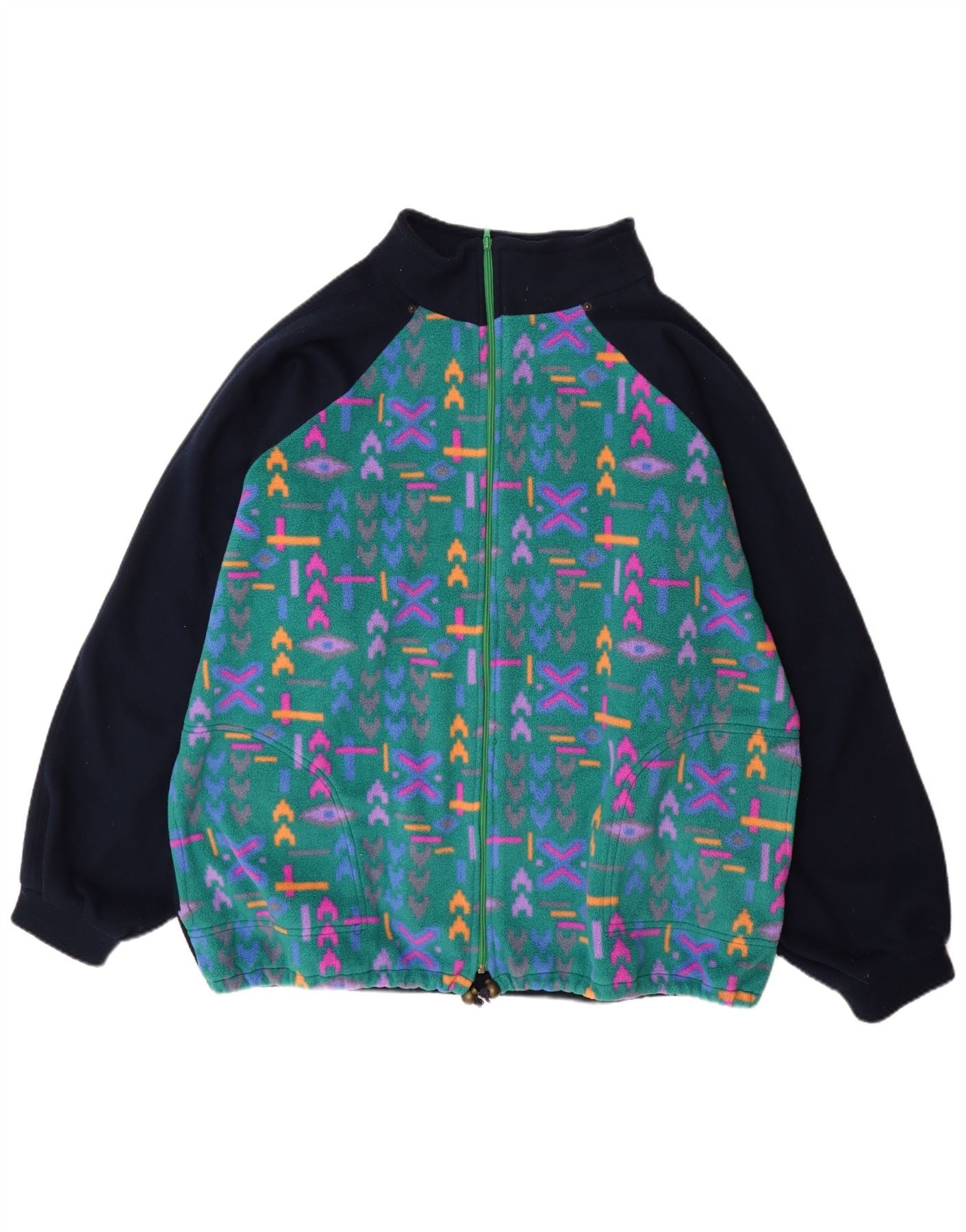 Giacca in pile da uomo vestibilità ampia VINTAGE UK 42 XL Poliestere geometrico verde