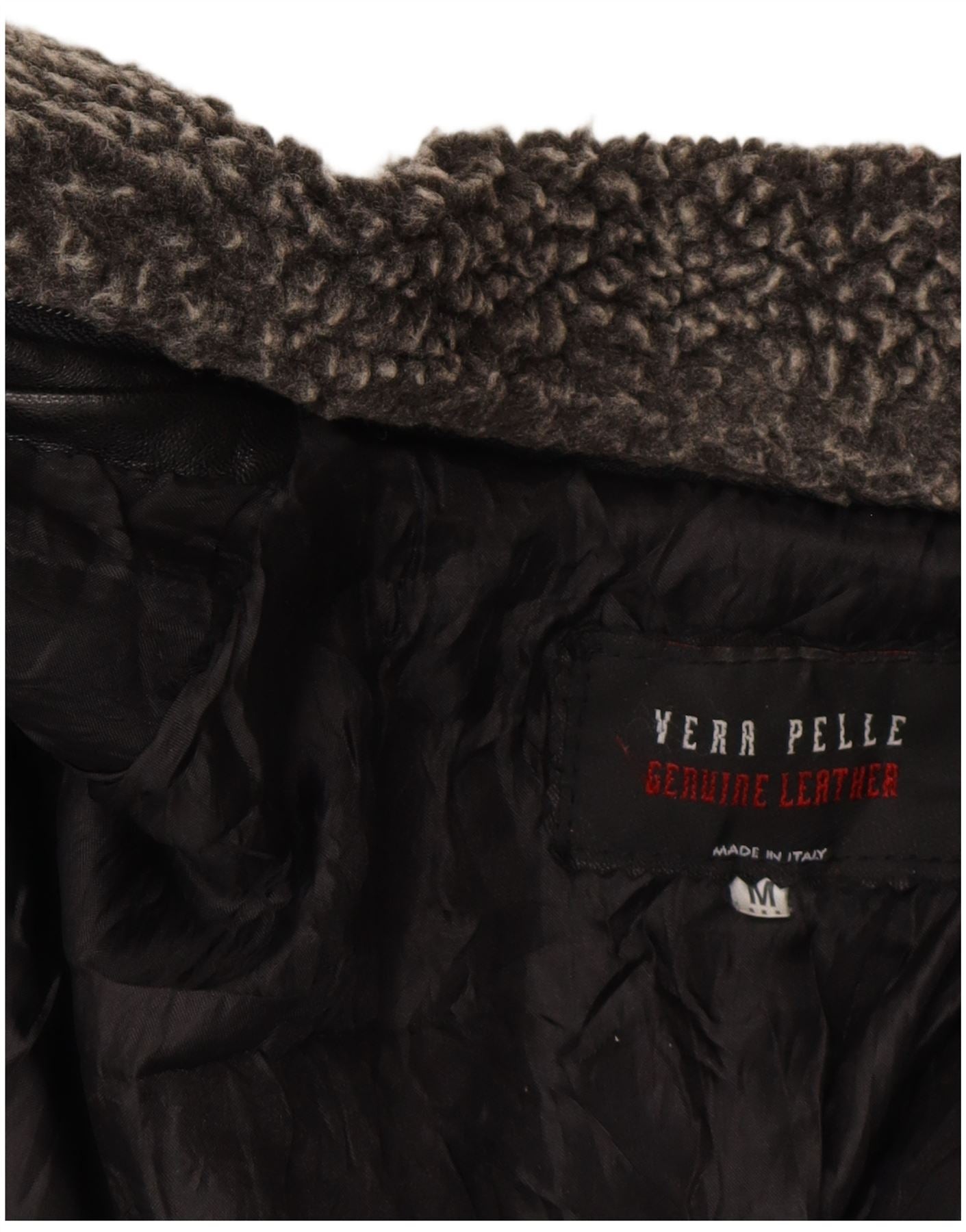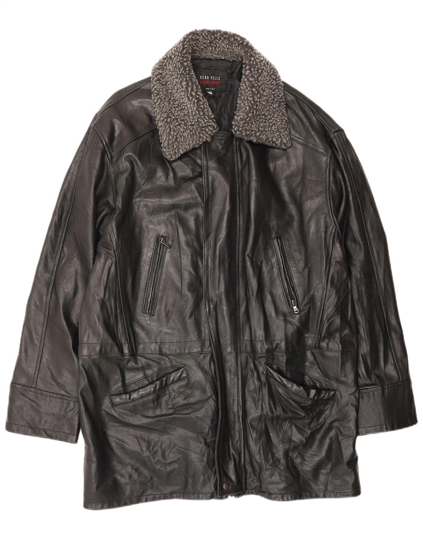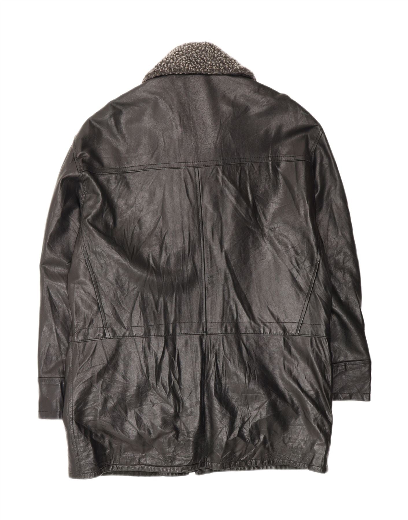 Cappotto in pelle vestibilità ampia da uomo VINTAGE UK 38 Pelle nera media