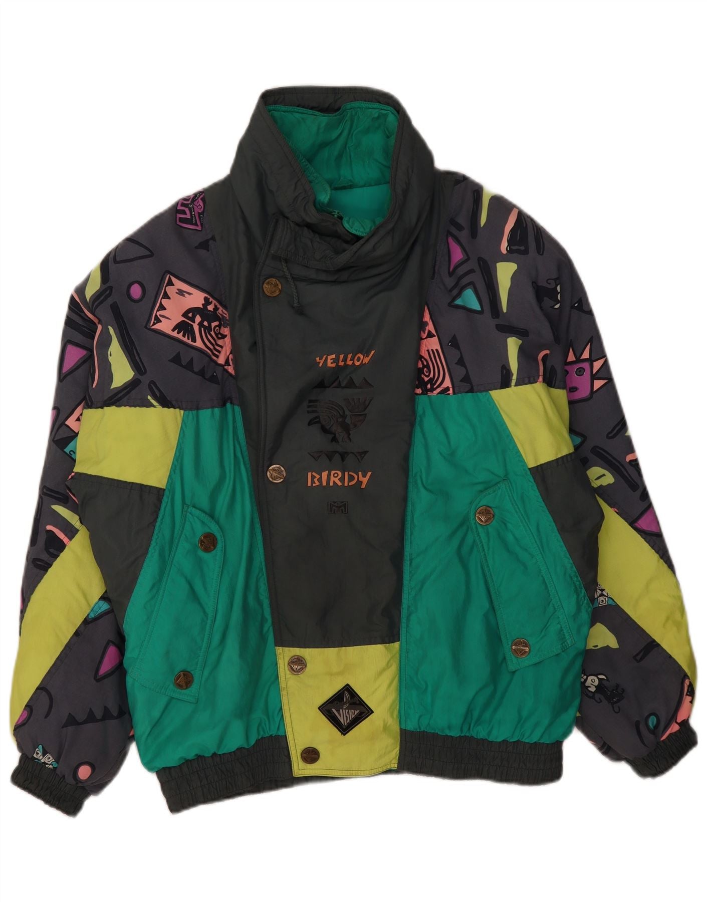 Giacca da sci da uomo vestibilità ampia VINTAGE UK 40 grande geometrica multicolore