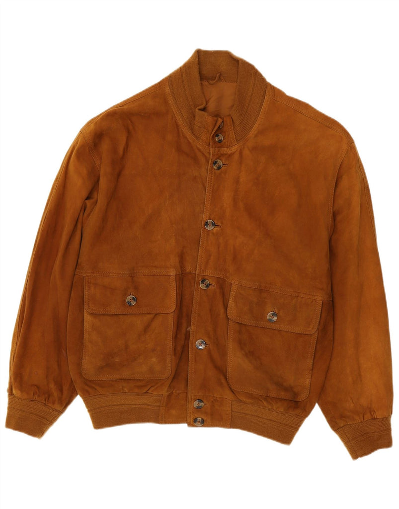 Giubbotto bomber in pelle scamosciata dal taglio ampio da uomo VINTAGE IT 48 in pelle marrone medio
