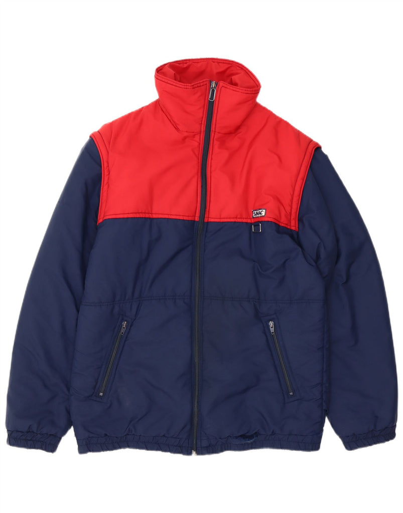 Giacca imbottita da uomo VINTAGE UK 38 medio blu navy color block in poliammide