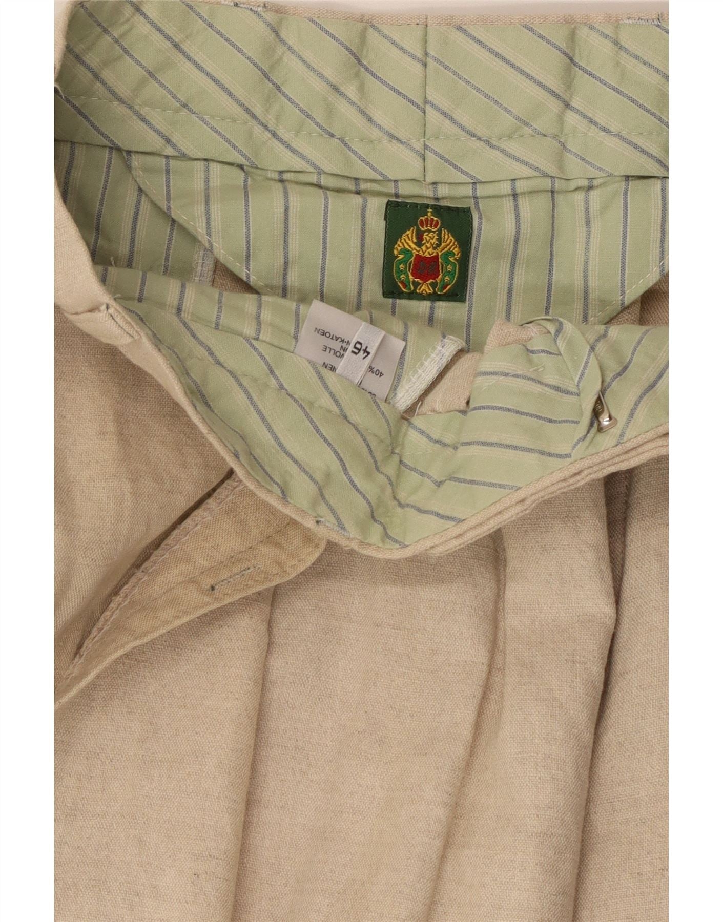 Pantaloni da abito da uomo con pedge VINTAGE IT 46 Small W32 L31 Lino beige