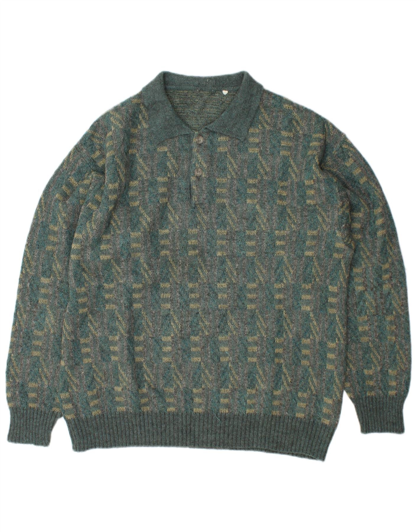 VINTAGE Maglione da uomo con collo alto Maglione grande mohair a righe verdi