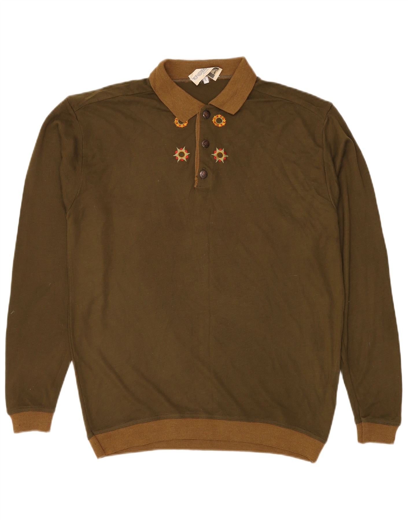 VINTAGE Maglione da uomo con collo a polo grande acrilico kaki