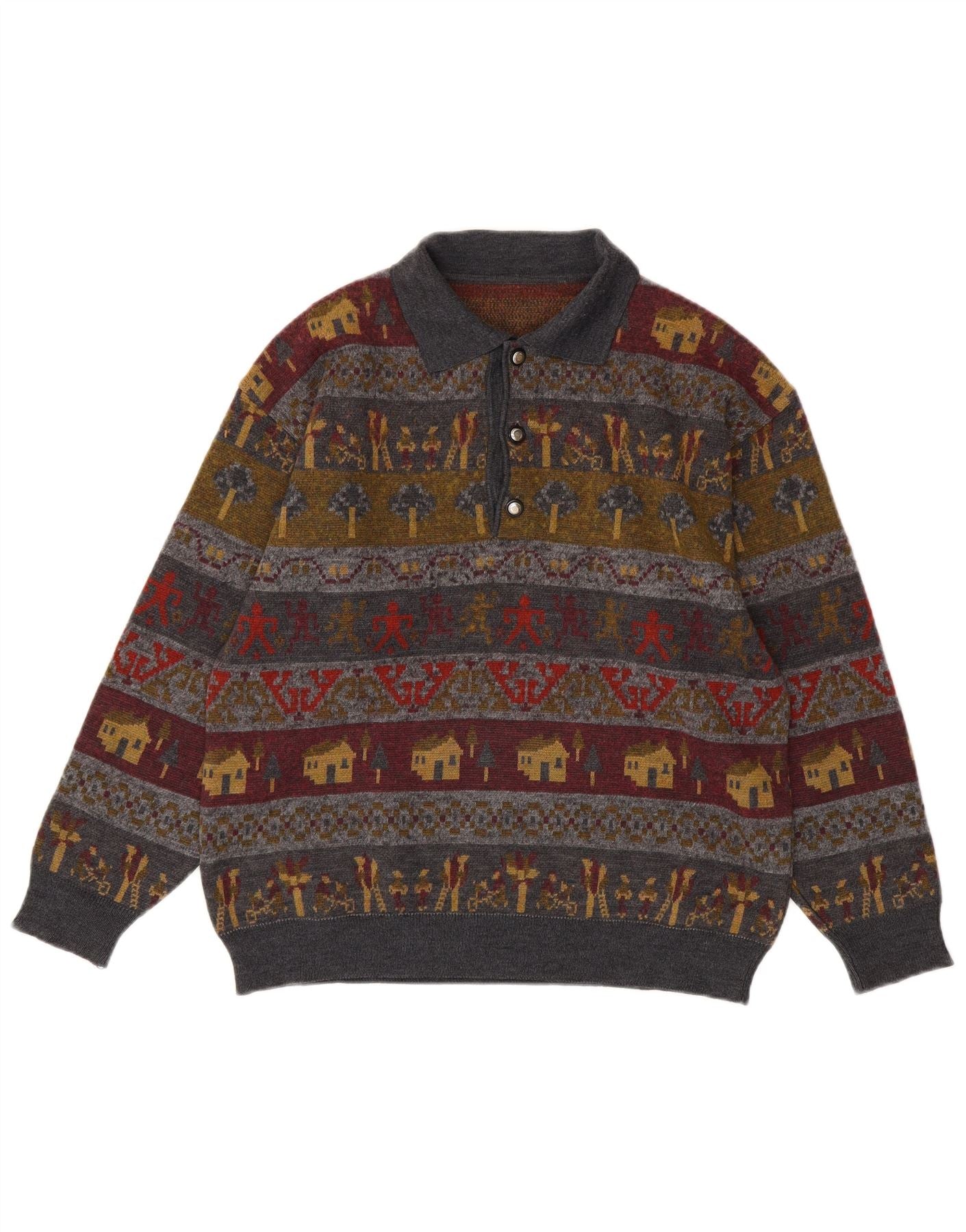 VINTAGE Maglione da uomo con collo alto e maglione medio multicolore Fair Isle