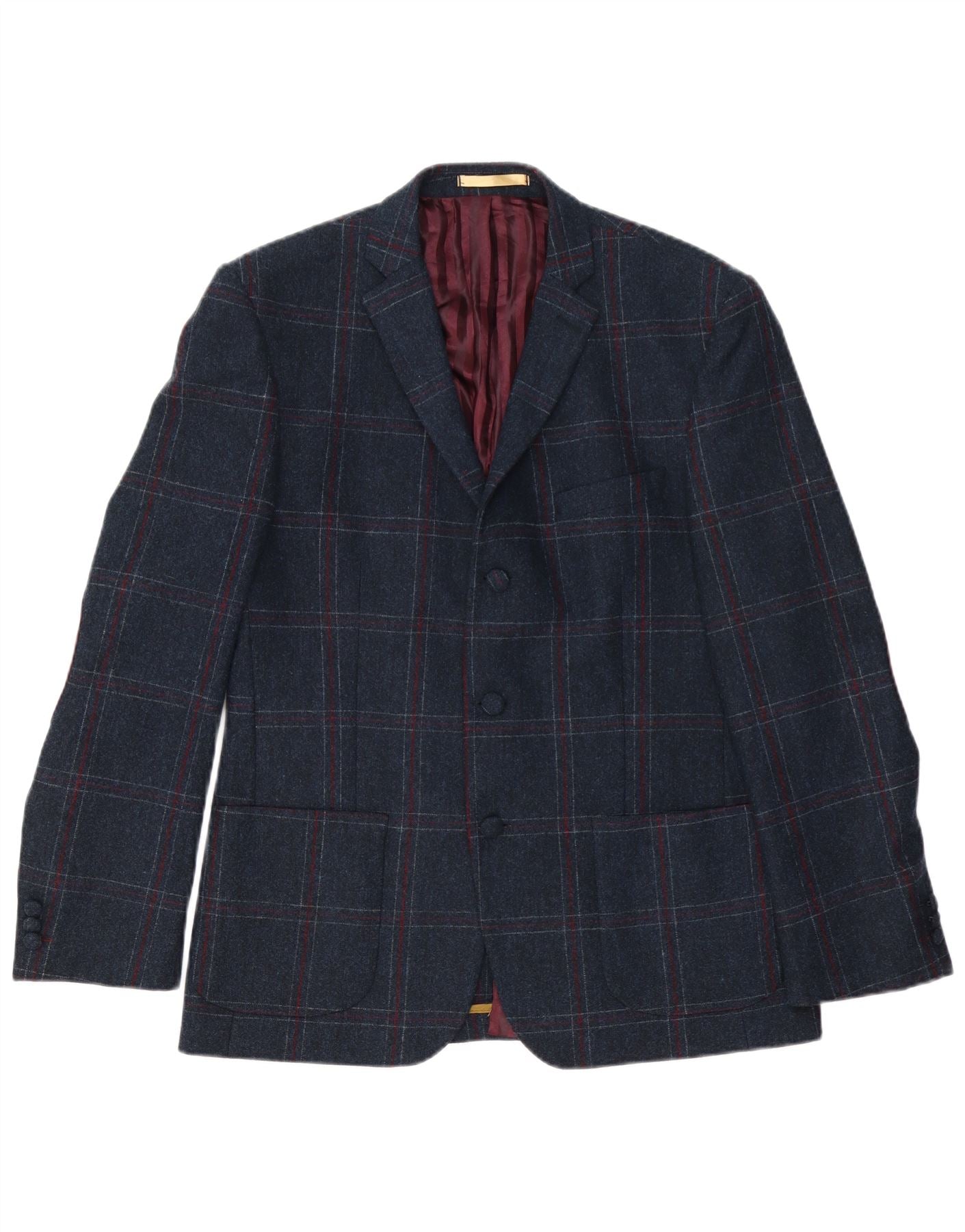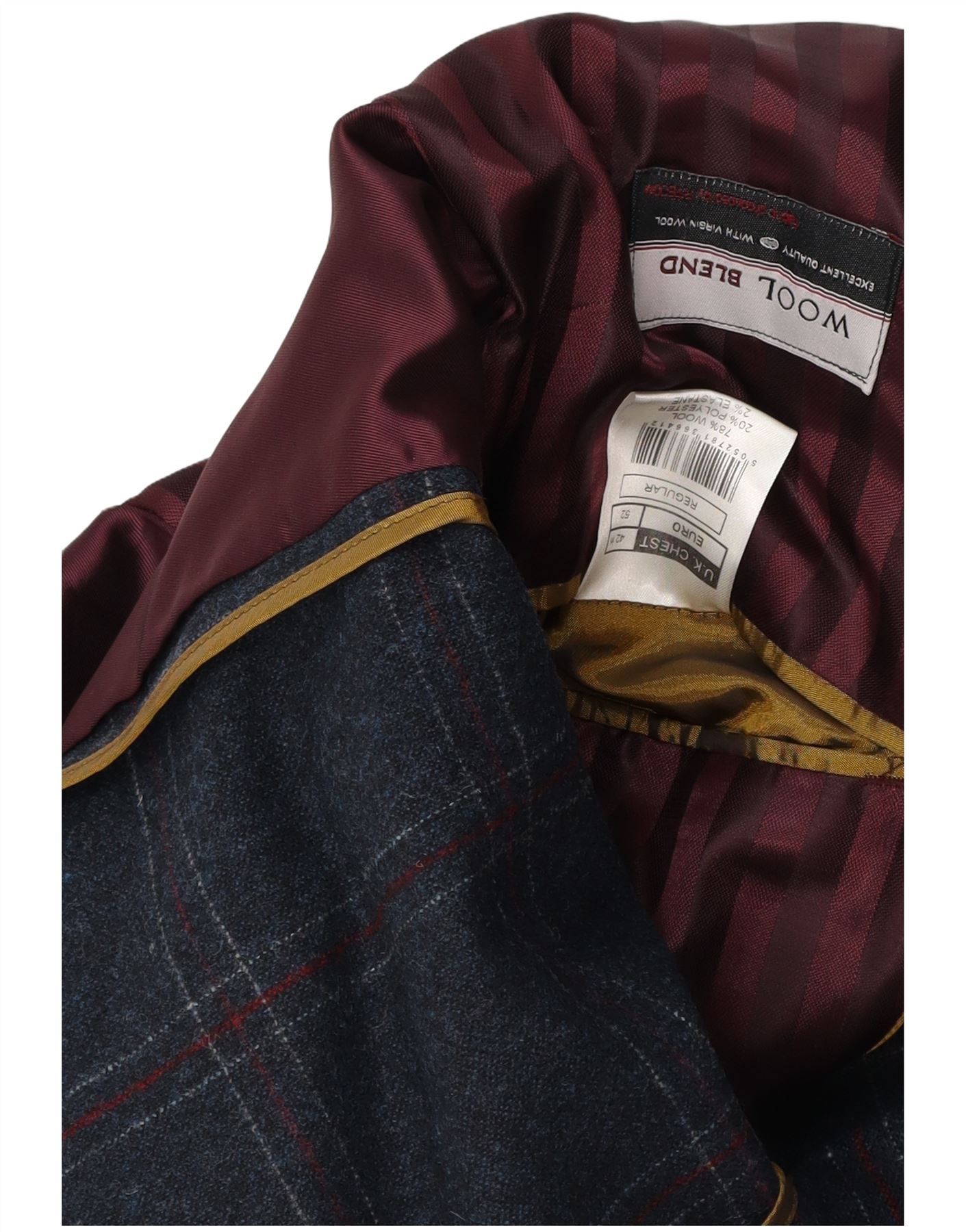 Giacca blazer a 3 bottoni vestibilità regolare da uomo VINTAGE UK 42 XL blu navy a quadri
