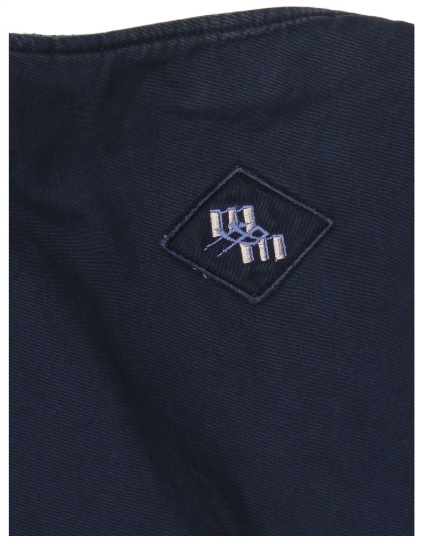 - Descrizione dell'IA: Questo gilet da uomo vintage è realizzato in tessuto misto con trama intrecciata. Presenta un vivace motivo geometrico azteco multicolore. Il design senza maniche ha uno scollo a V e una chiusura full zip. Questo capo reversibile offre versatilità, con un lato blu navy in tinta unita con logo ricamato. Presenta pratiche tasche su entrambi i lati e offre una vestibilità regolare.