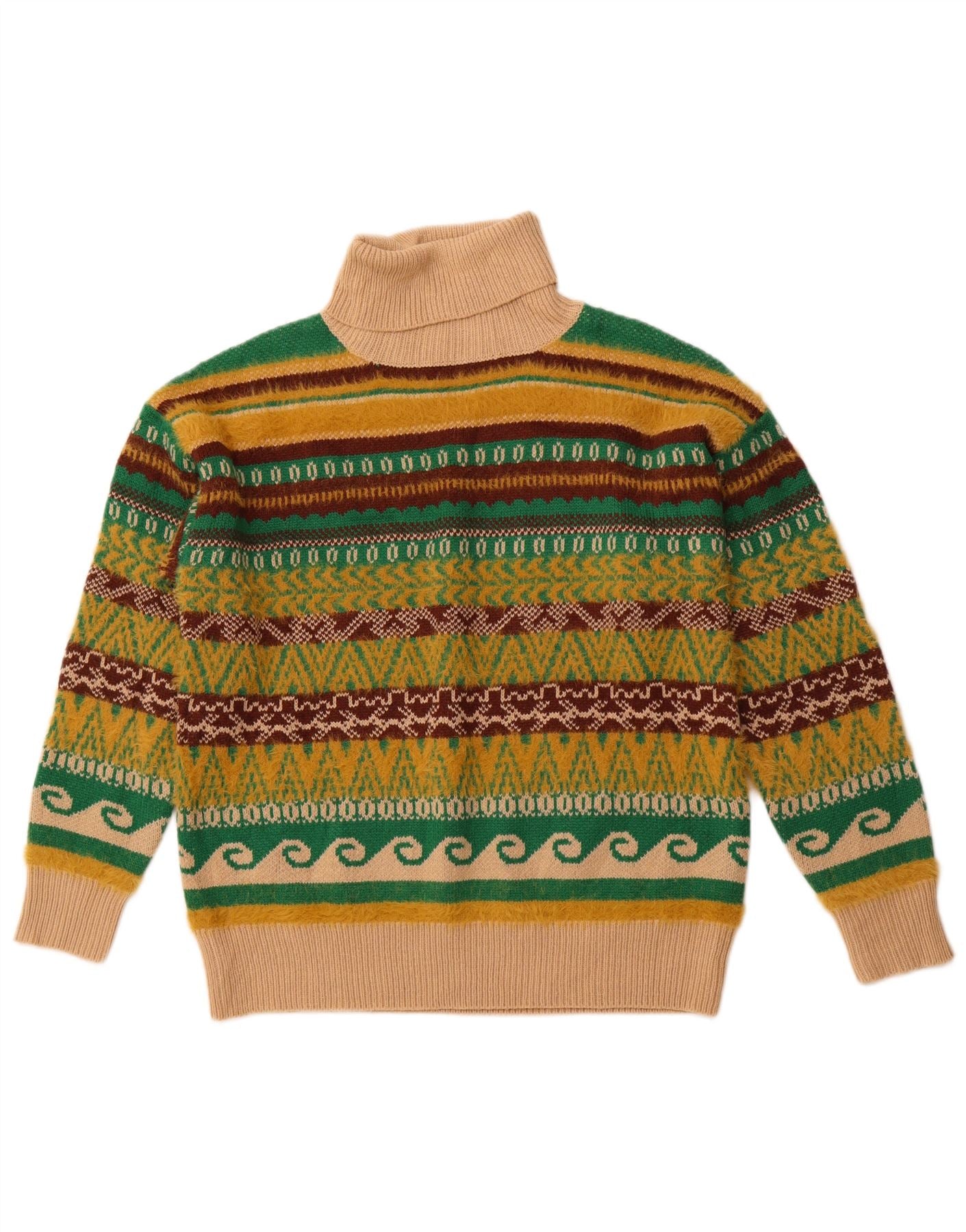 Maglione maglione collo alto da uomo VINTAGE grande Fair Isle multicolore