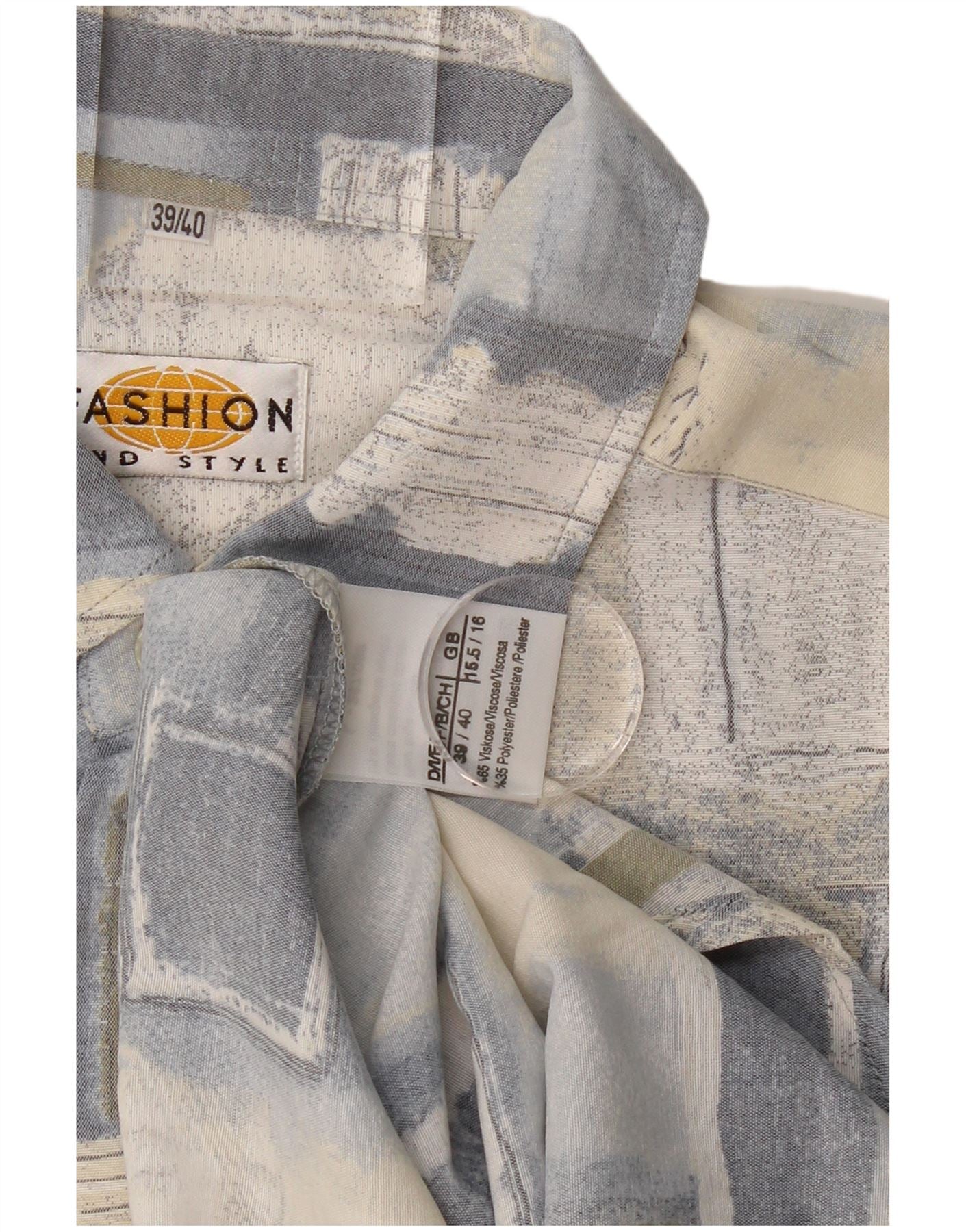 VINTAGE Mens Shirt Size 15.5/16 39/40 Medium Blue Geometric Viscose
