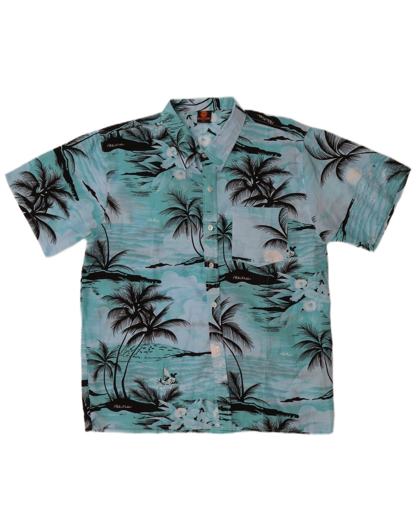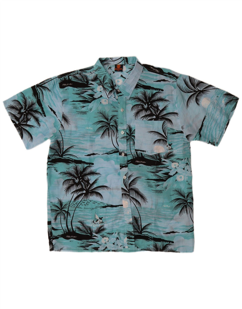 Camicia a maniche corte da uomo VINTAGE 2XL hawaiana in poliestere blu