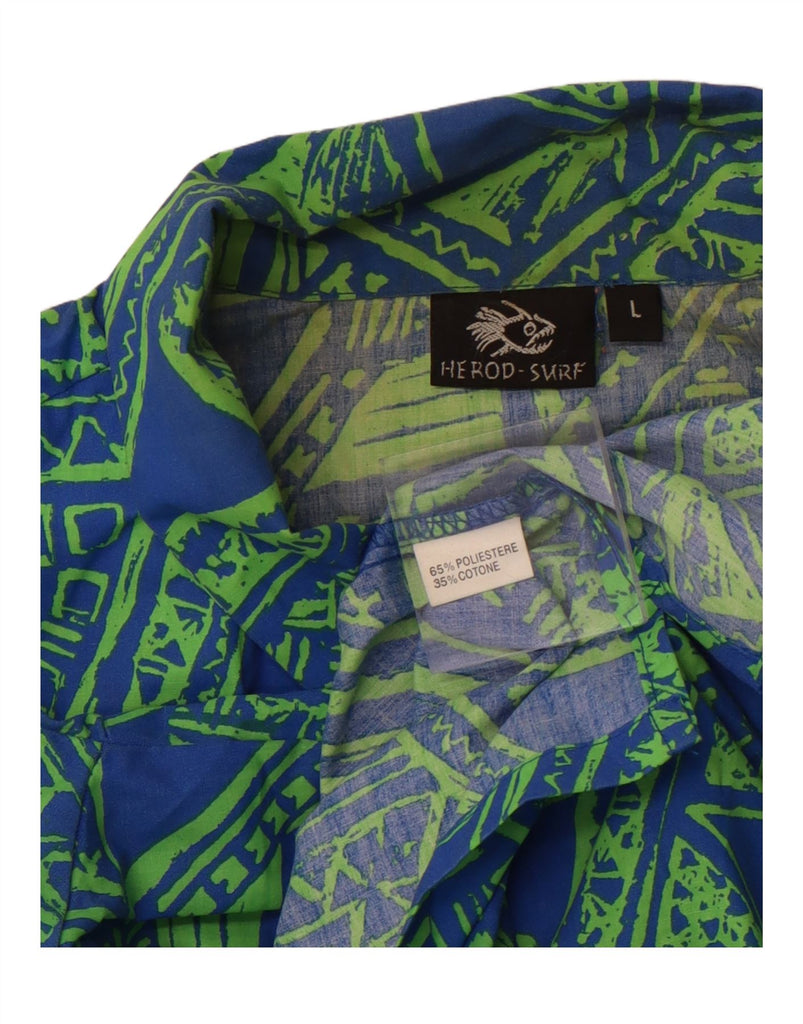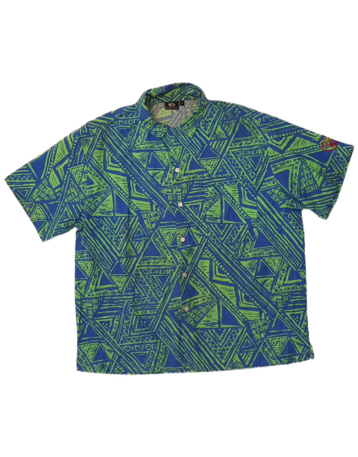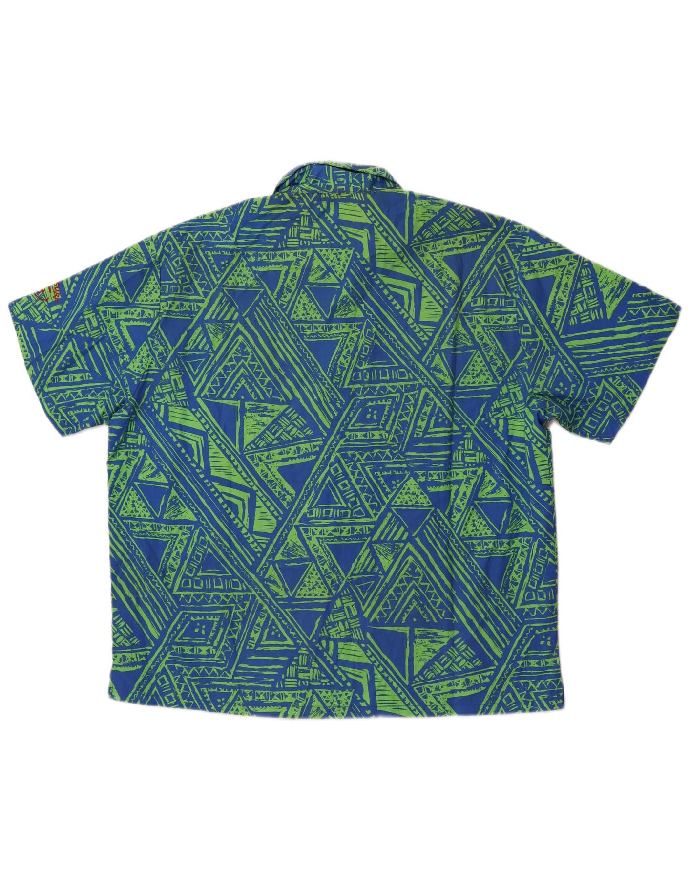 Camicia a maniche corte da uomo VINTAGE grande poliestere geometrico blu