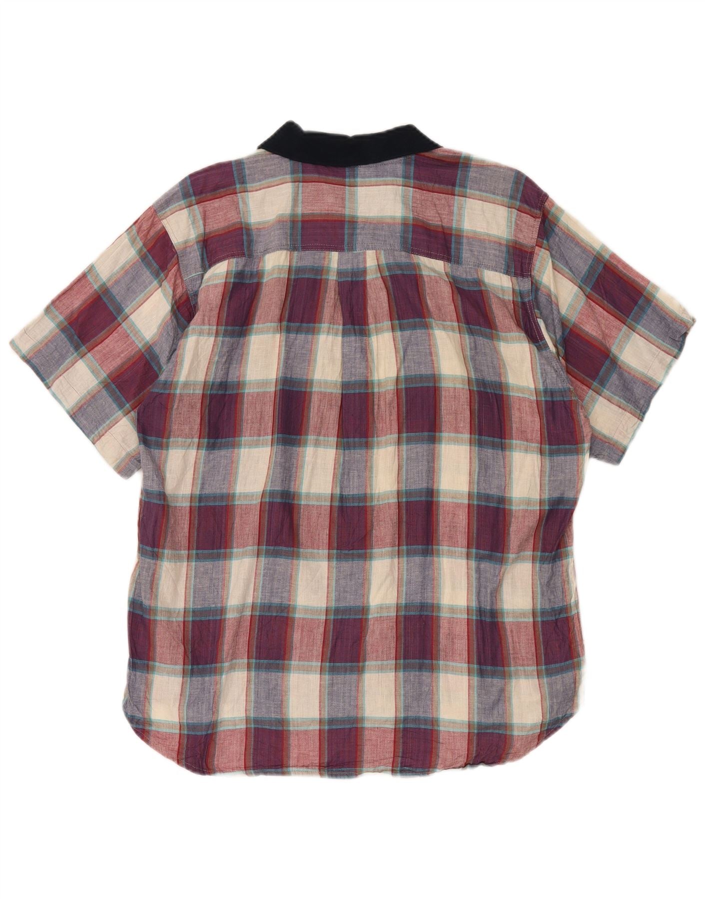 Camicia vintage da uomo a maniche corte in cotone a quadri multicolore grande