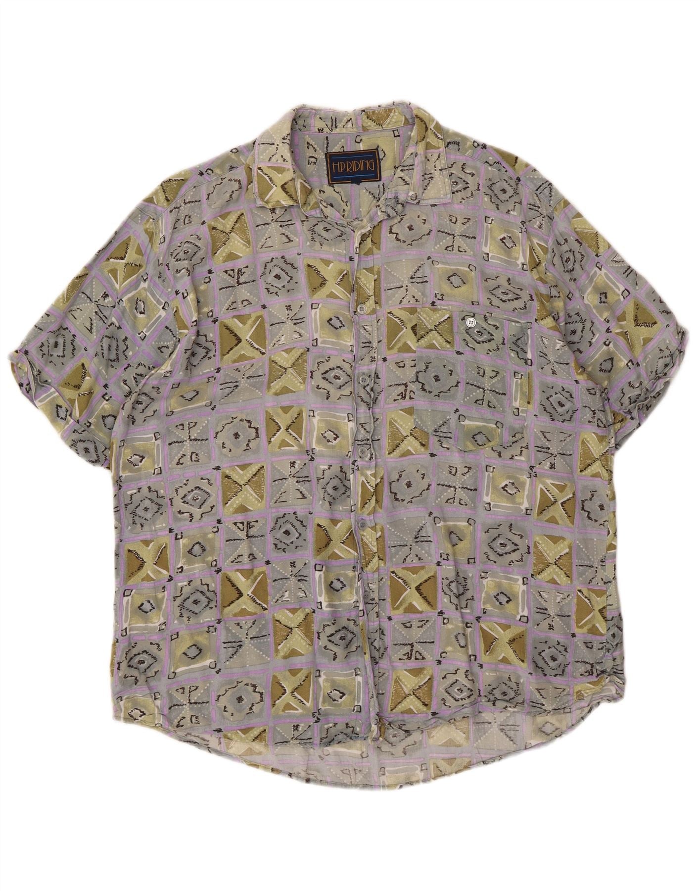 Camicia a maniche corte da uomo VINTAGE XL in viscosa geometrica multicolore