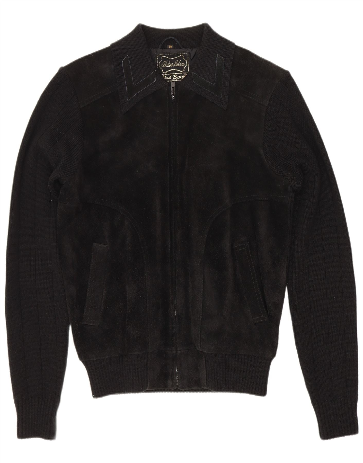 Giubbotto bomber in pelle scamosciata da uomo VINTAGE EU 50 grande in pelle nera
