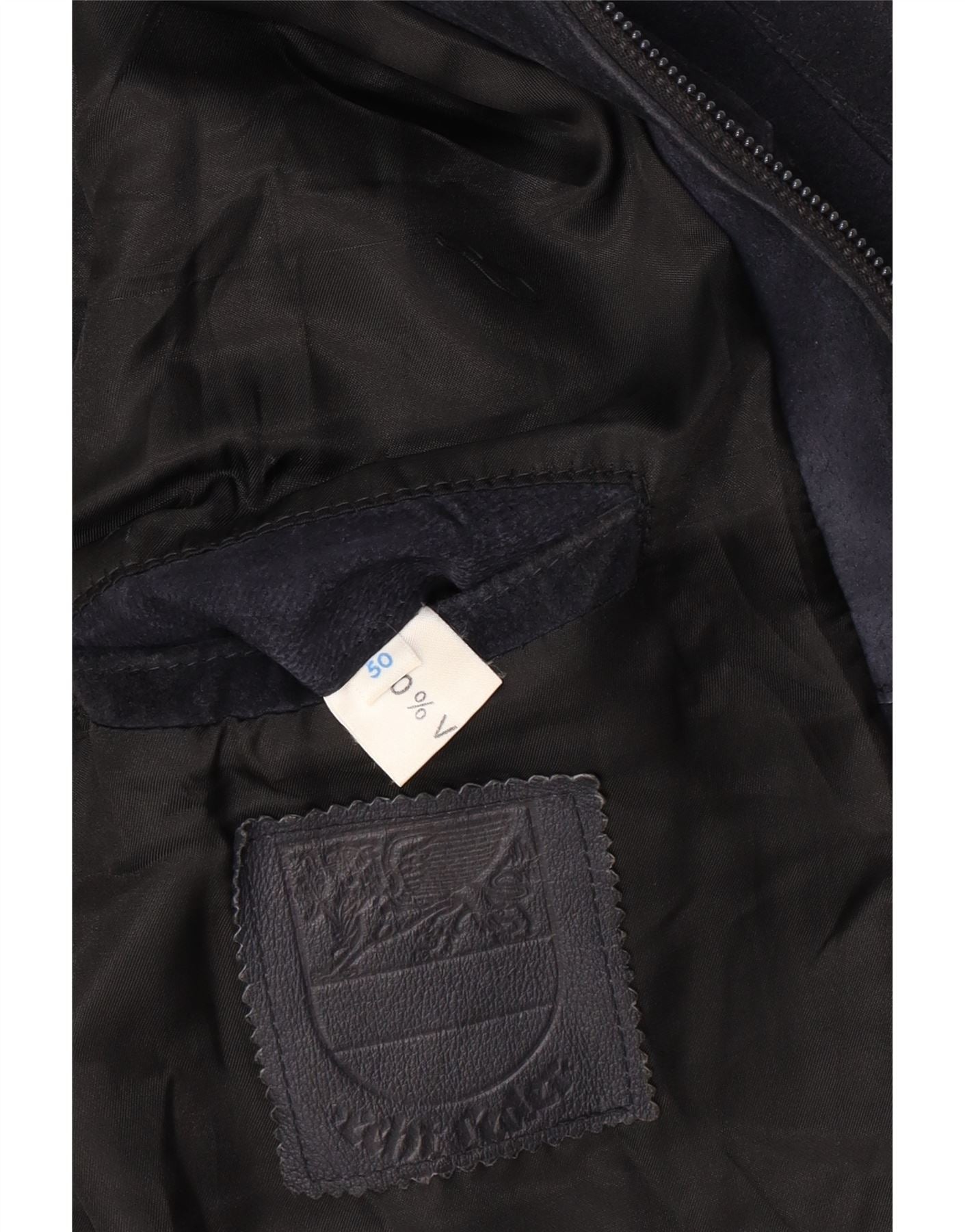Giubbotto bomber in pelle scamosciata da uomo VINTAGE IT 50 Large in pelle blu navy