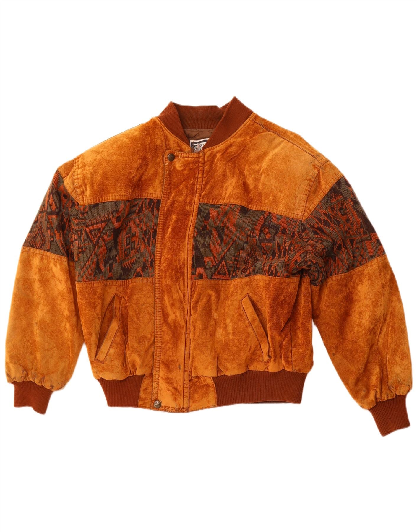 Giubbotto bomber in pelle scamosciata da uomo VINTAGE UK 42 XL Cotone geometrico marrone