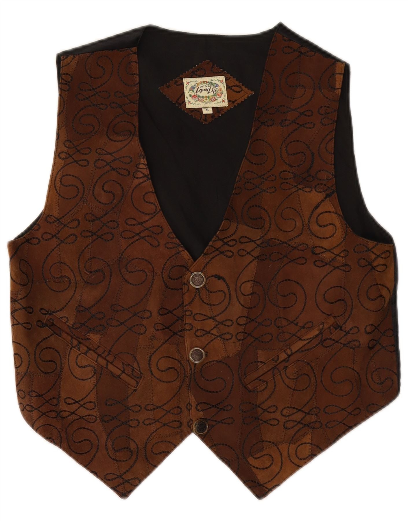 Gilet da uomo in pelle scamosciata VINTAGE piccolo in pelle Paisley marrone
