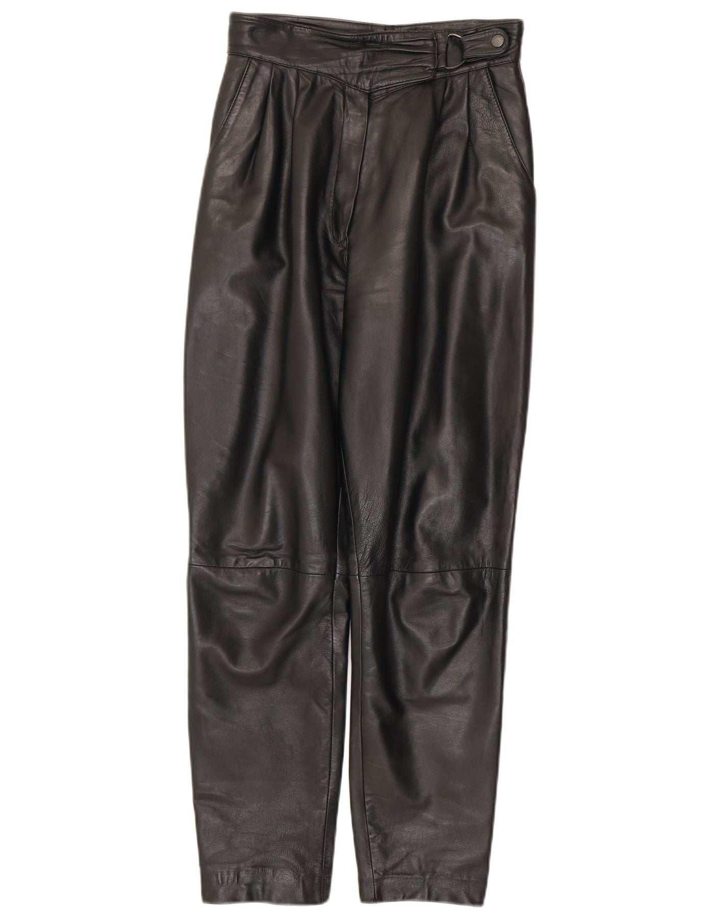 Pantaloni in pelle affusolati da uomo VINTAGE W26 L28 in pelle nera