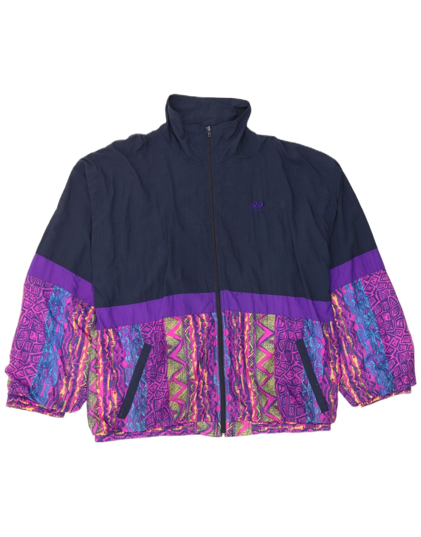 Giacca da tuta da uomo VINTAGE UK 46/48 XL Nylon color block blu navy