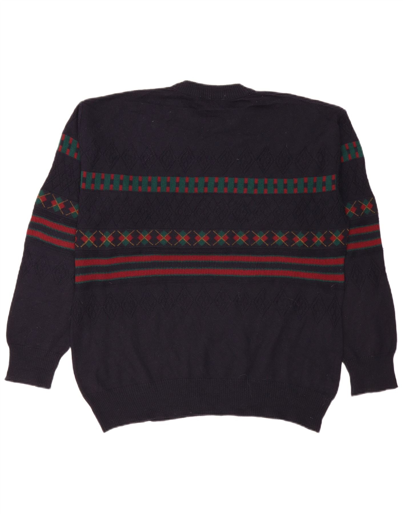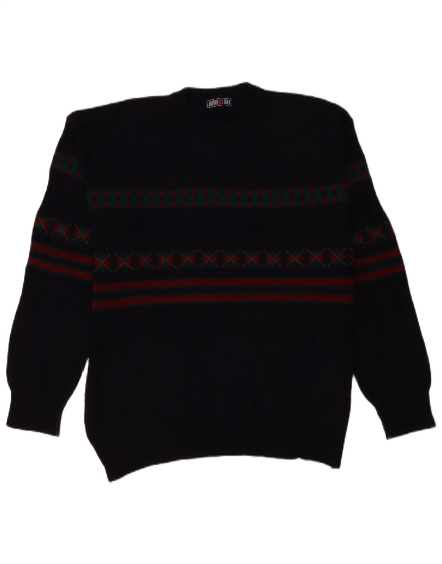 Maglione maglione collo alto da uomo VINTAGE IT 50 grande blu navy geometrico