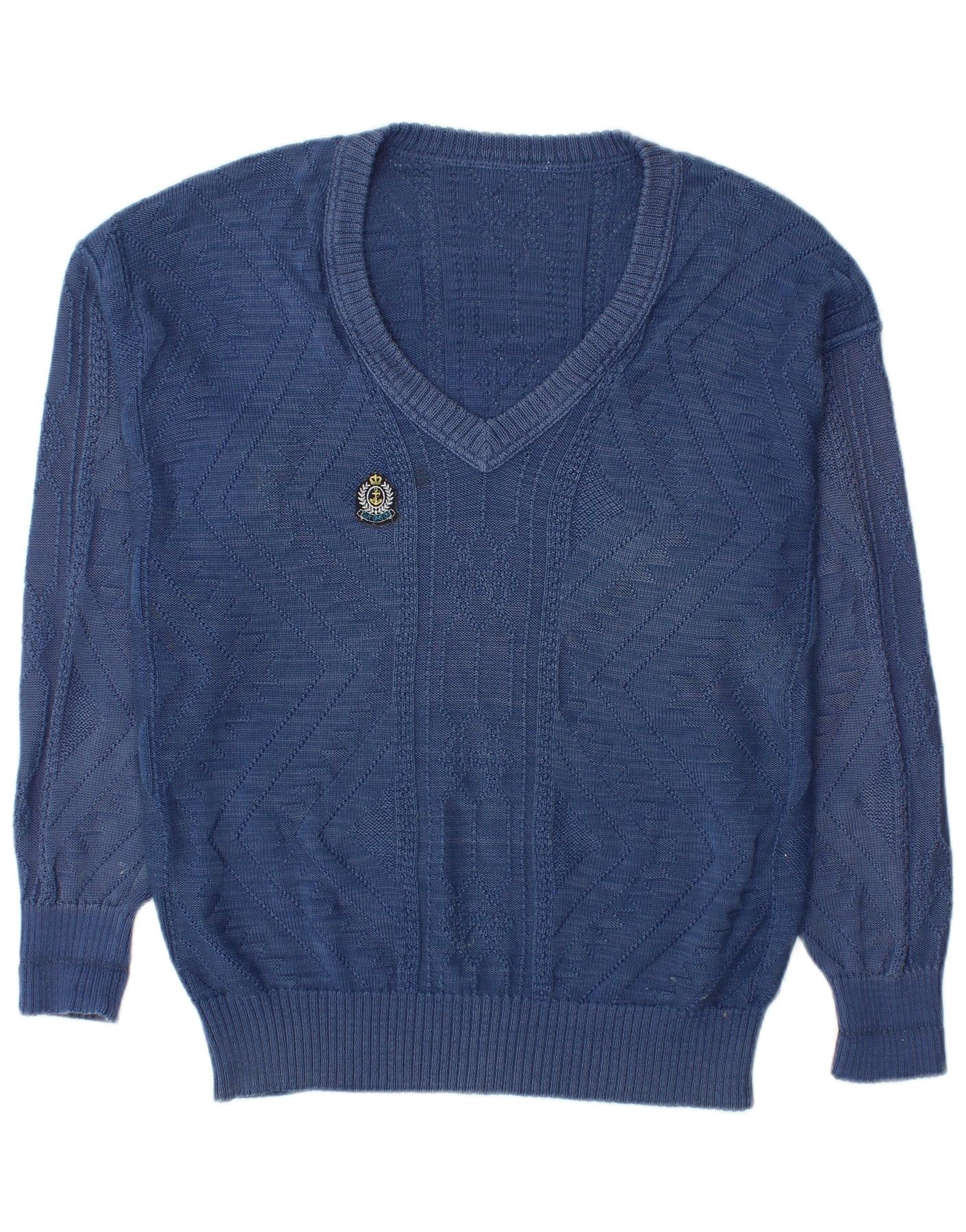Maglione vintage da uomo con scollo a V IT 48 cotone blu medio