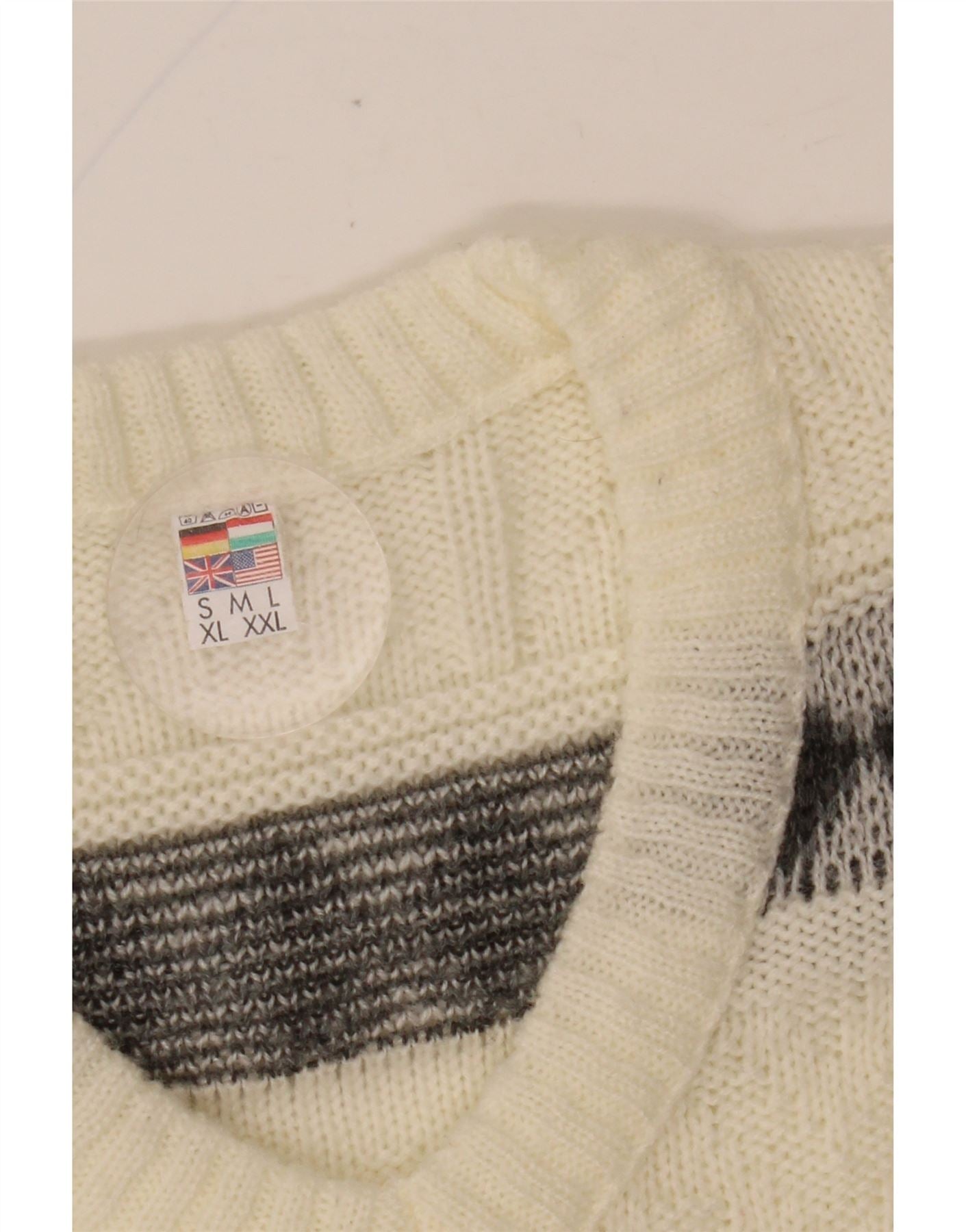 VINTAGE Maglione da uomo con scollo a V grande Fair Isle bianco sporco