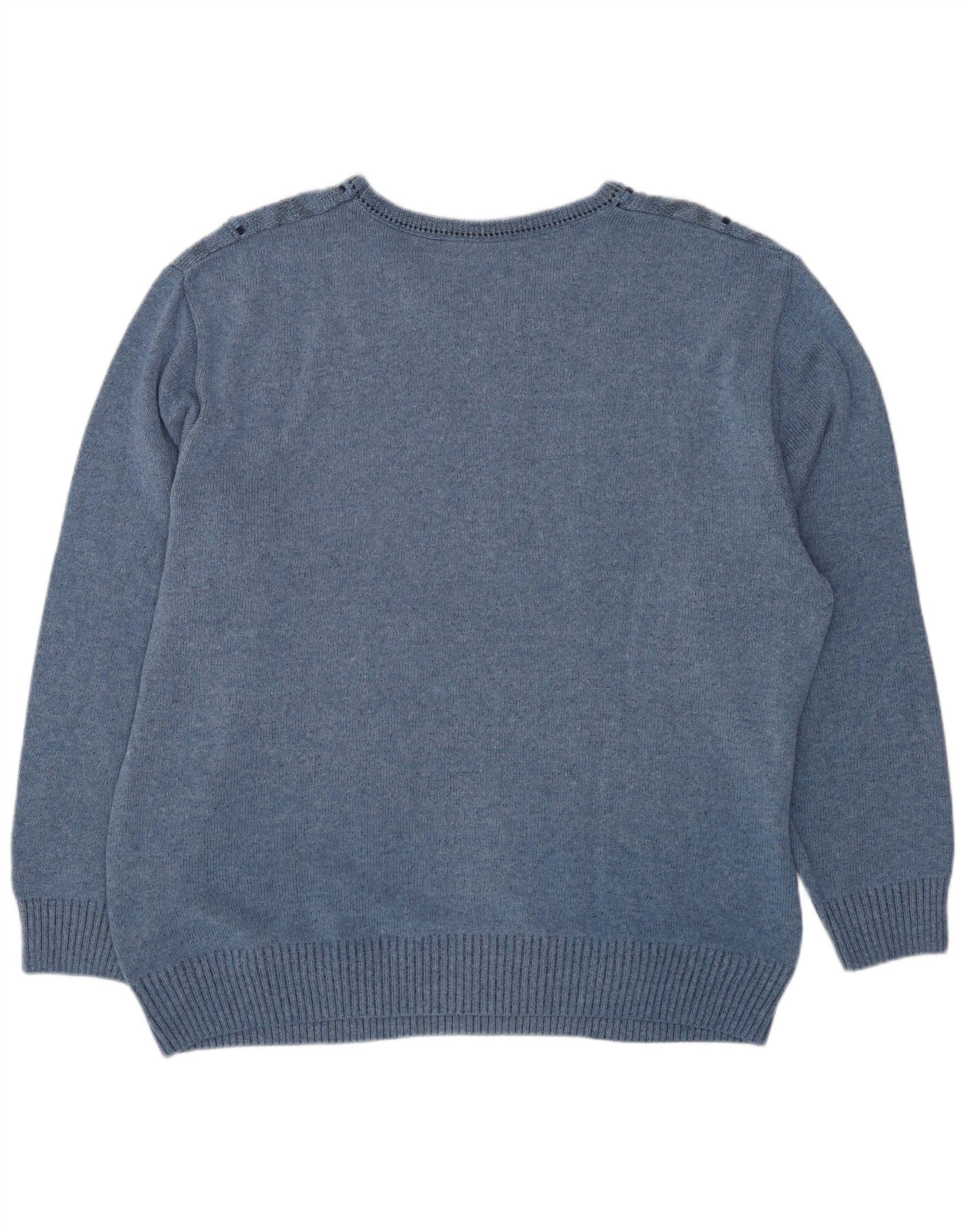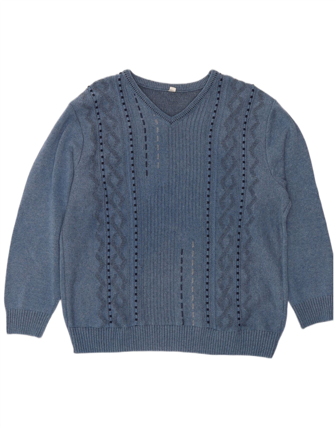 Maglione maglione con scollo a V da uomo VINTAGE UK 44 XL cotone geometrico blu