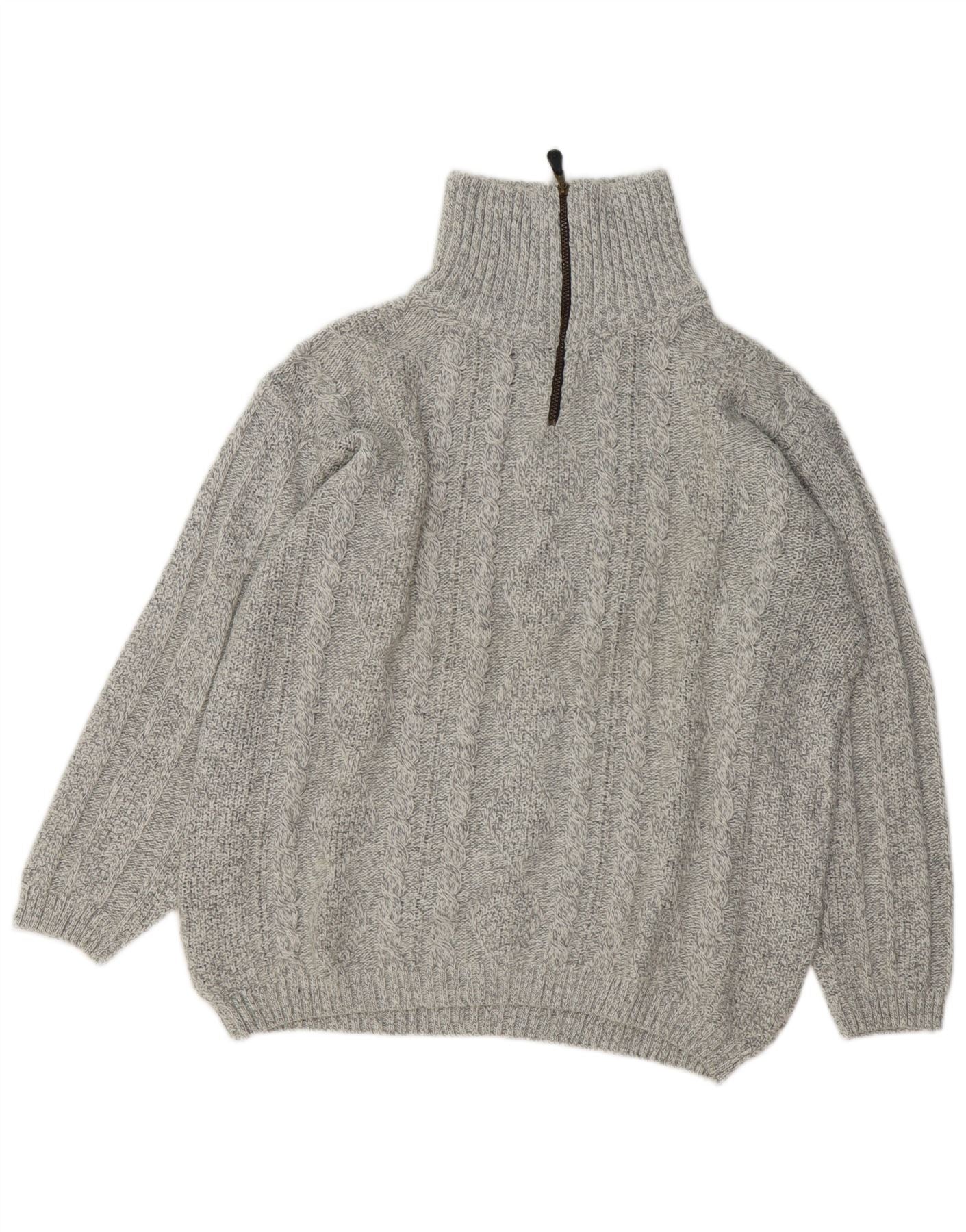 Maglione maglione con zip da uomo VINTAGE XL in lana grigia