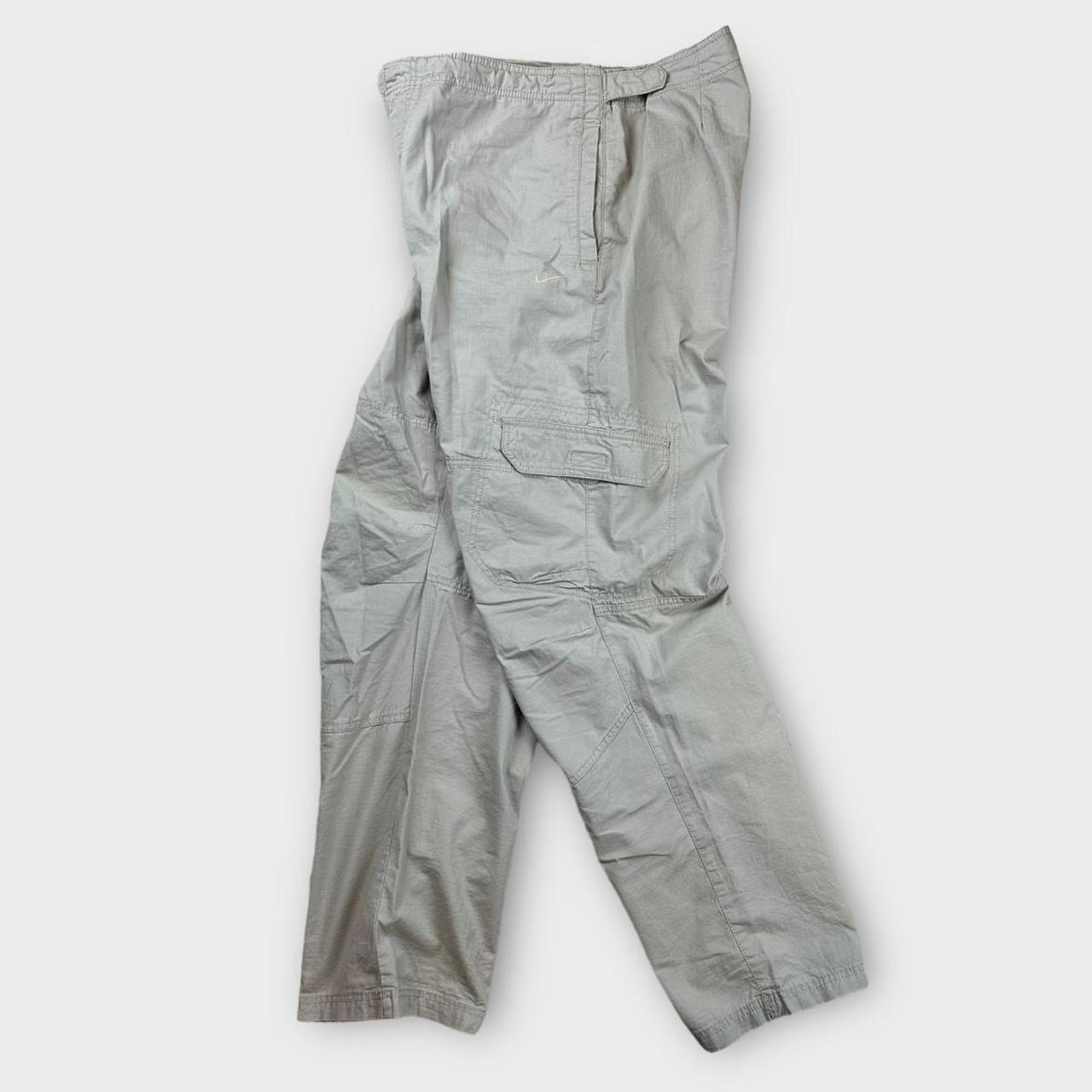 Cargo Nike ripstop dei primi anni 2000 in beige con uno swoosh sul davanti e tasche cargo