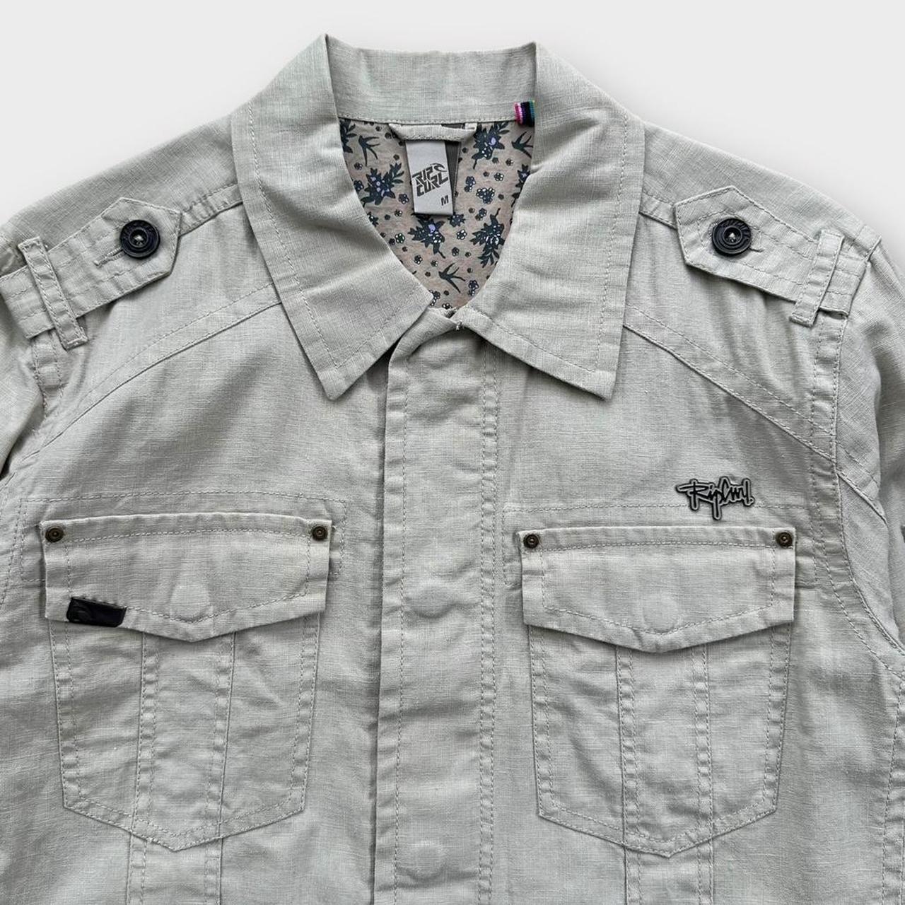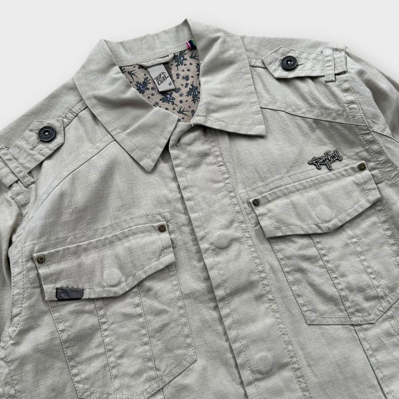 Giacca vintage in lino leggero Rip Curl con zip, primi anni 2000, tasche multiple e logo sul petto