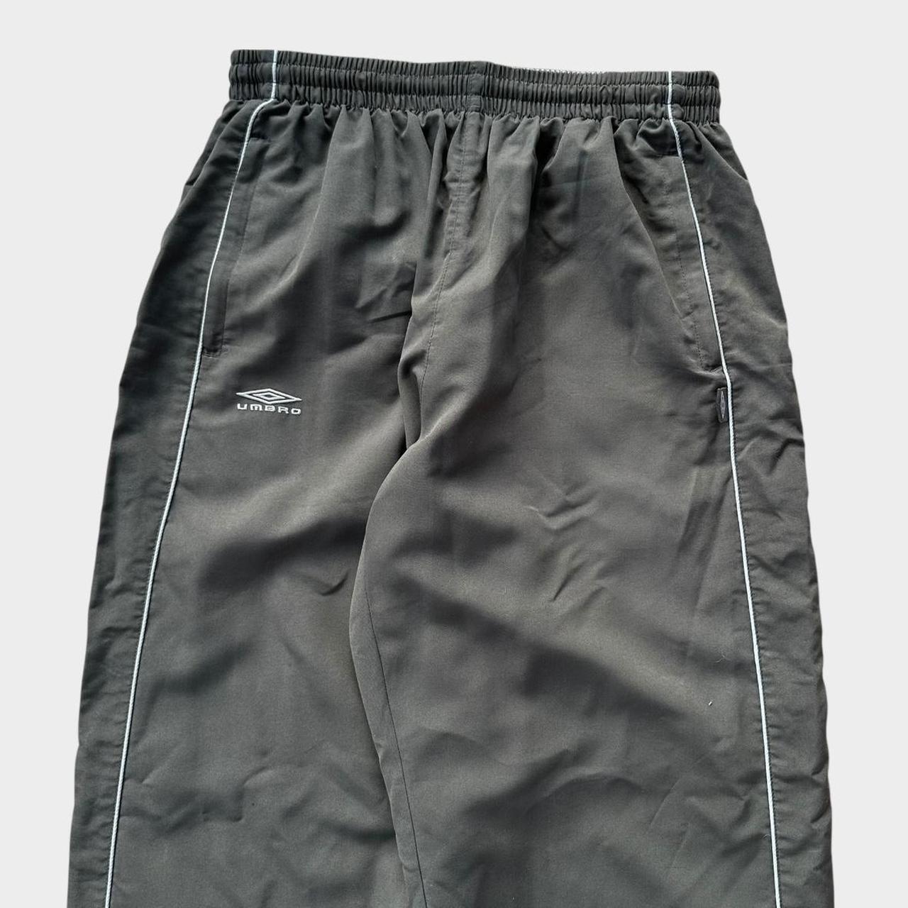 Pantaloni sportivi Y2K Umbro dei primi anni 2000 in grigio con logo ricamato e scritta sulle gambe
