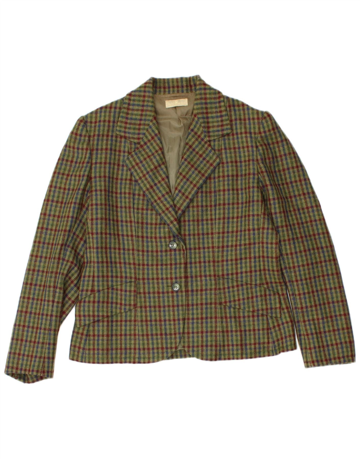 Set gonna vintage da donna a 2 bottoni in 2 pezzi UK 12 medio W26 a quadri kaki