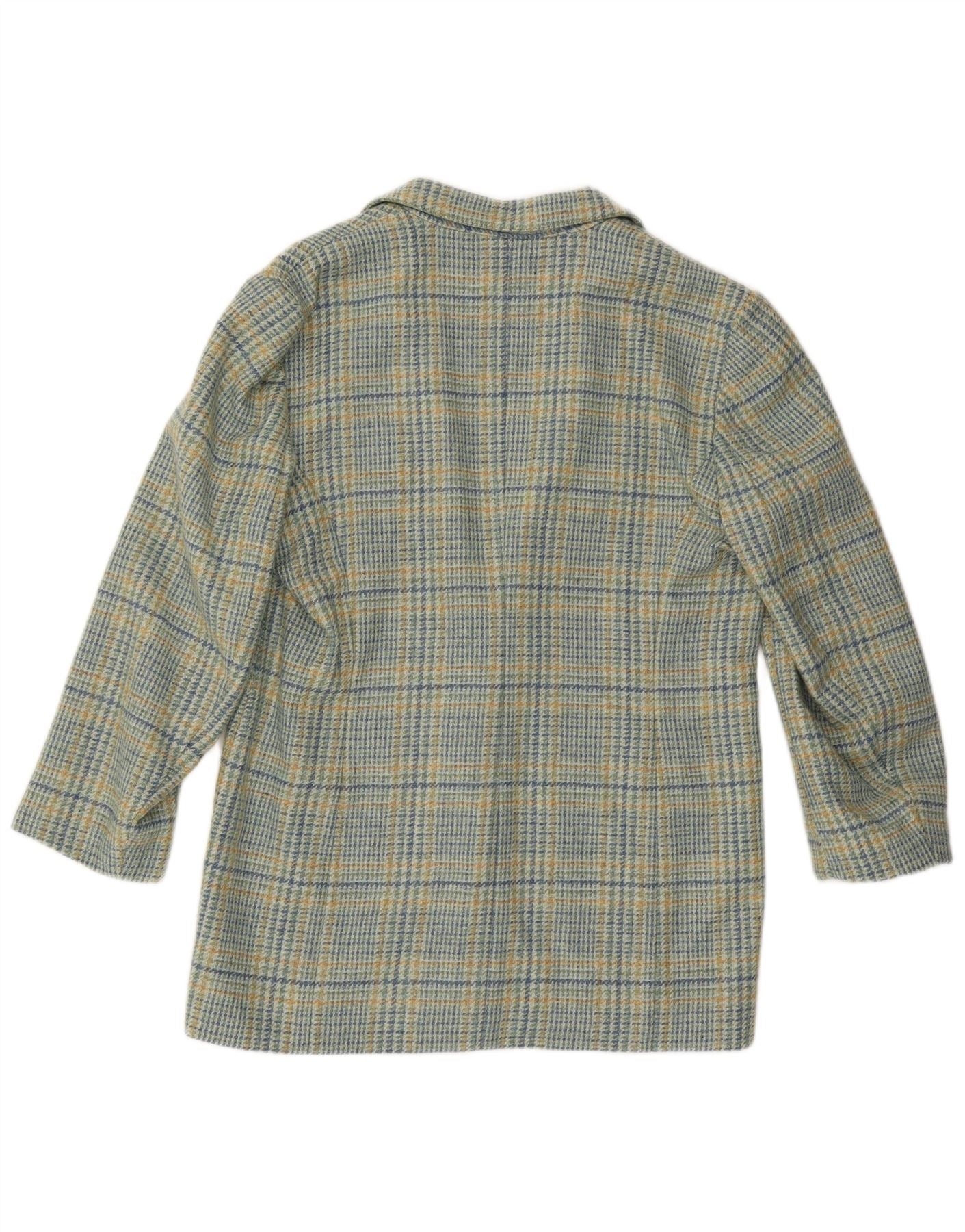 Giacca blazer vintage da donna a 2 bottoni IT 46 grande lana a quadri blu