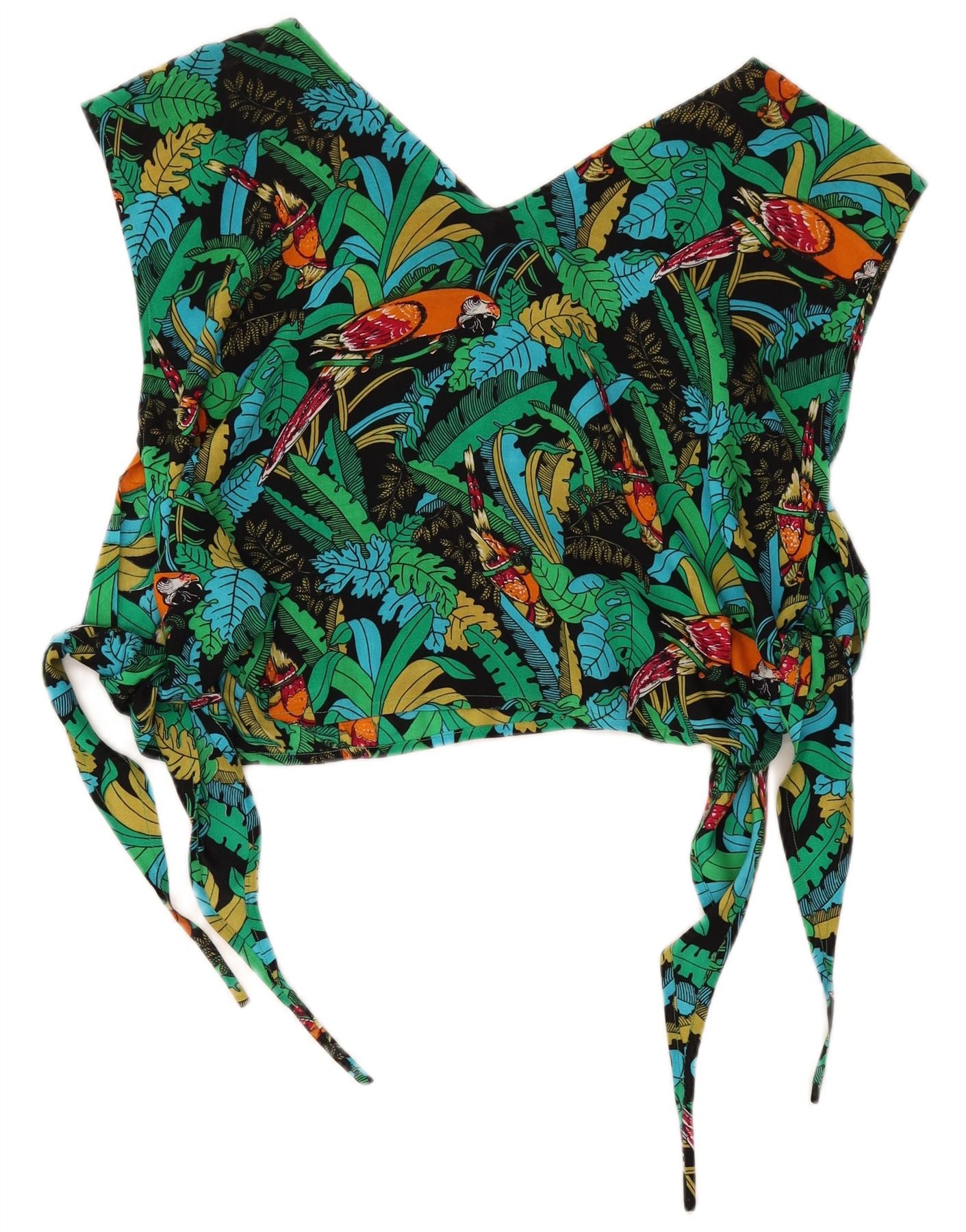 - Descrizione dell'IA: Questo top corto da donna vintage è realizzato in un tessuto leggero, caratterizzato da un vivace motivo floreale tropicale multicolore. Vanta uno scollo a V lusinghiero e un design senza maniche. Lo stile avvolgente crea una vestibilità rilassata, fissata con una chiusura a cravatta. La sua lunghezza corta aggiunge un tocco moderno ed elegante, perfetto per un look da festival.