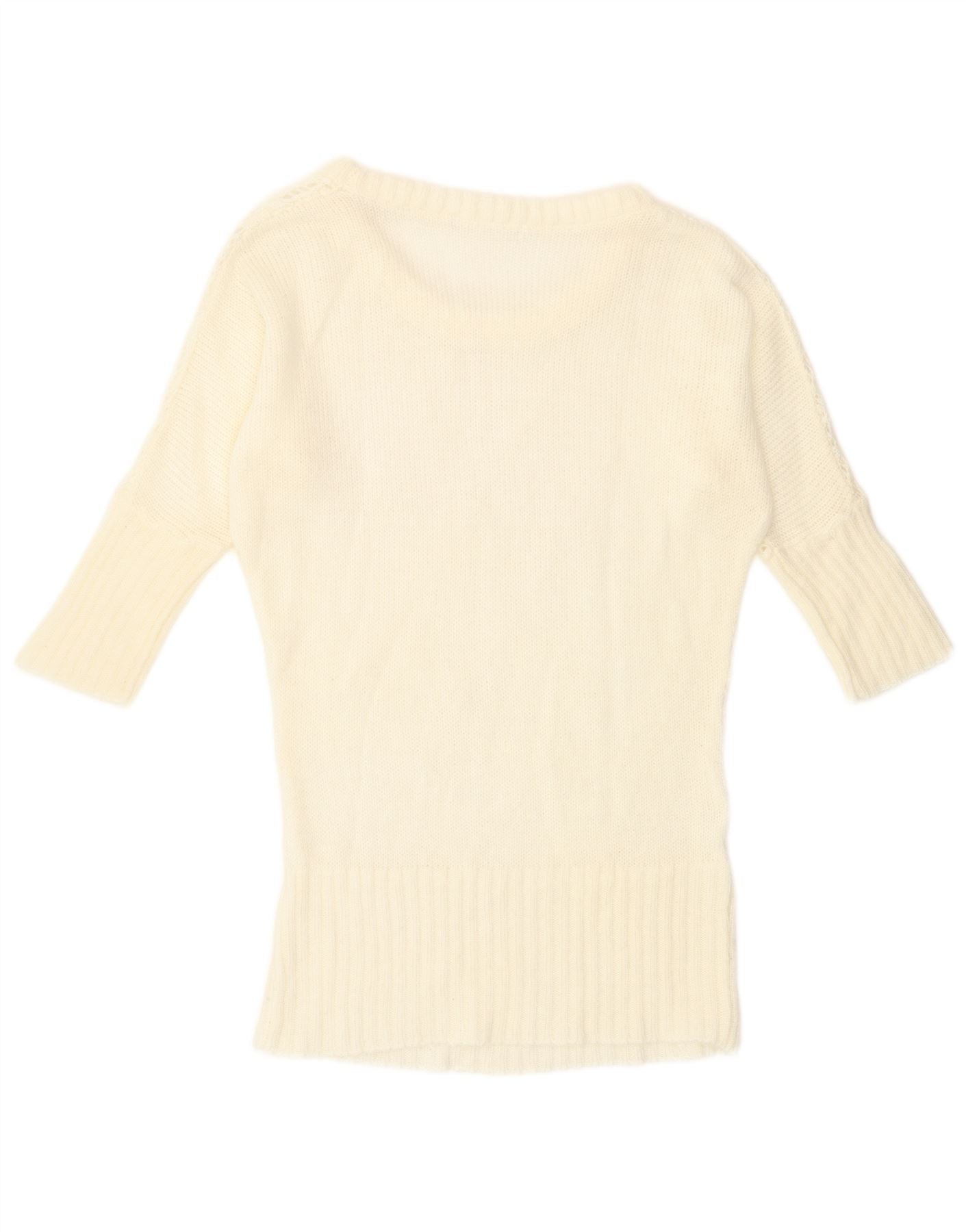 Maglione vintage da donna con scollo a barca con maniche a 3/4 UK 12 bianco medio