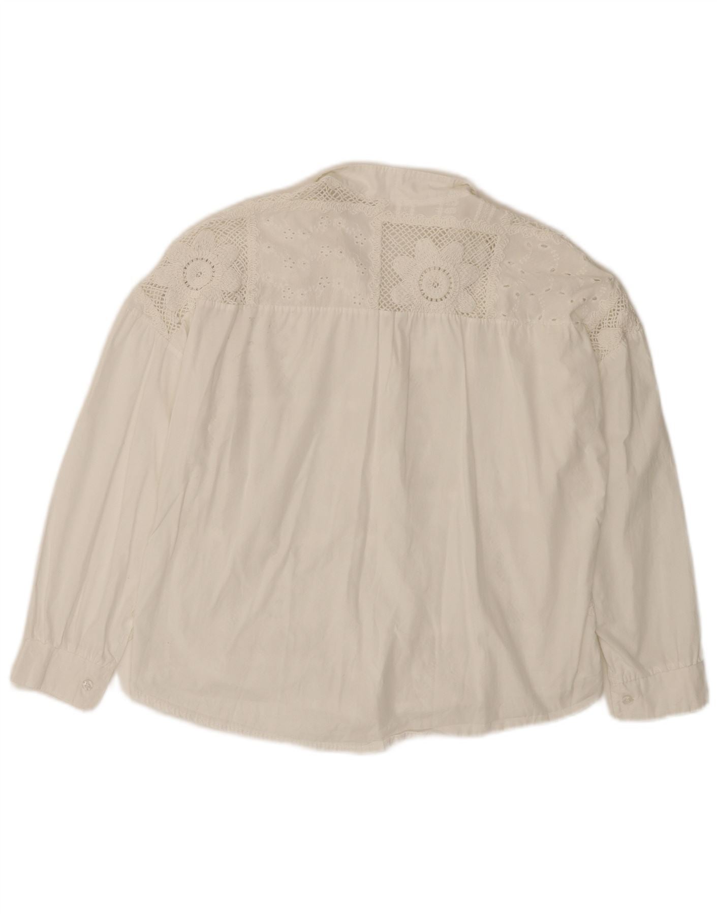 Camicetta da donna con maniche a 3/4 VINTAGE UK 14 Cotone floreale bianco medio