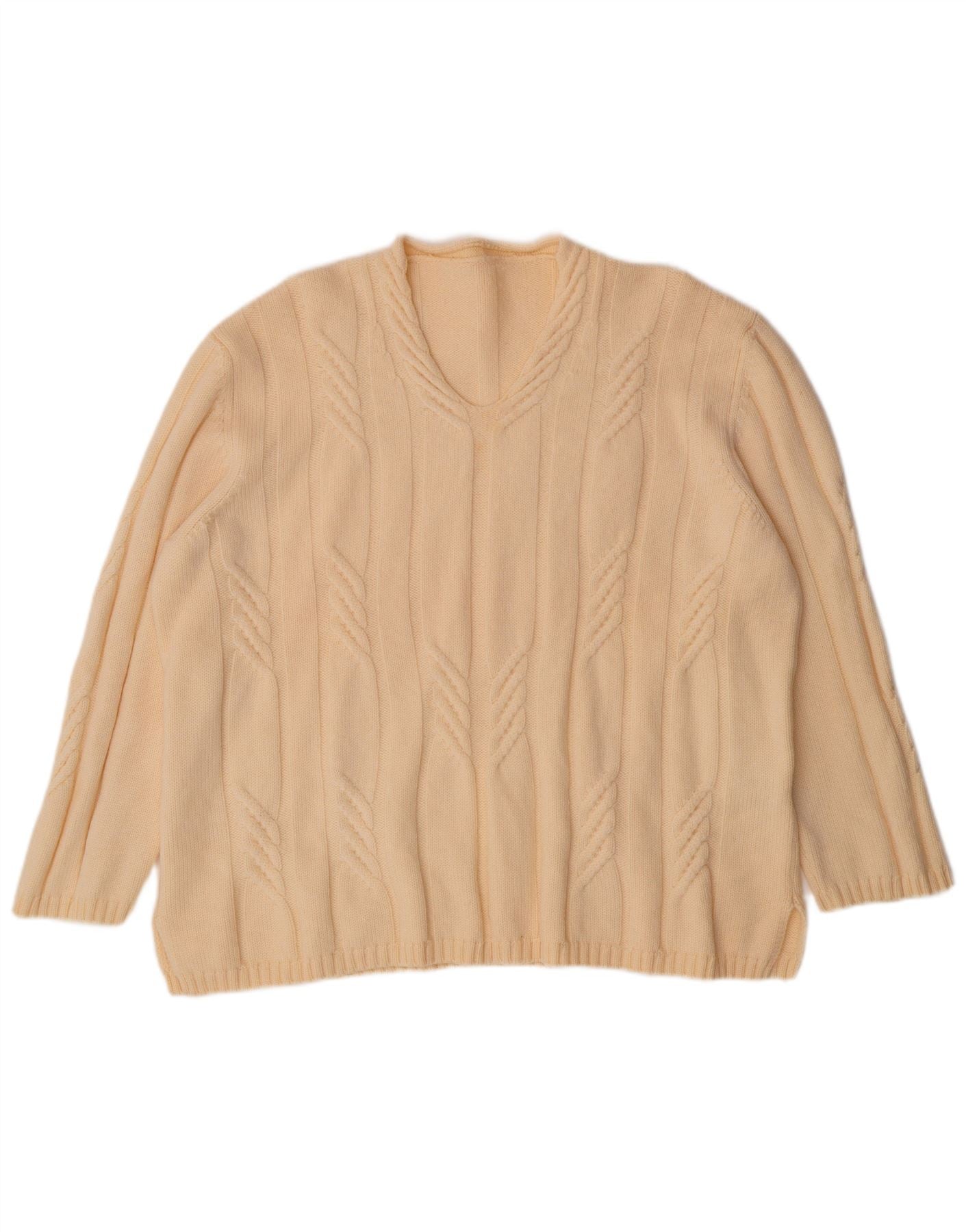 Maglione da donna VINTAGE con scollo a V e maniche a 3/4 UK 18 XL Bianco sporco