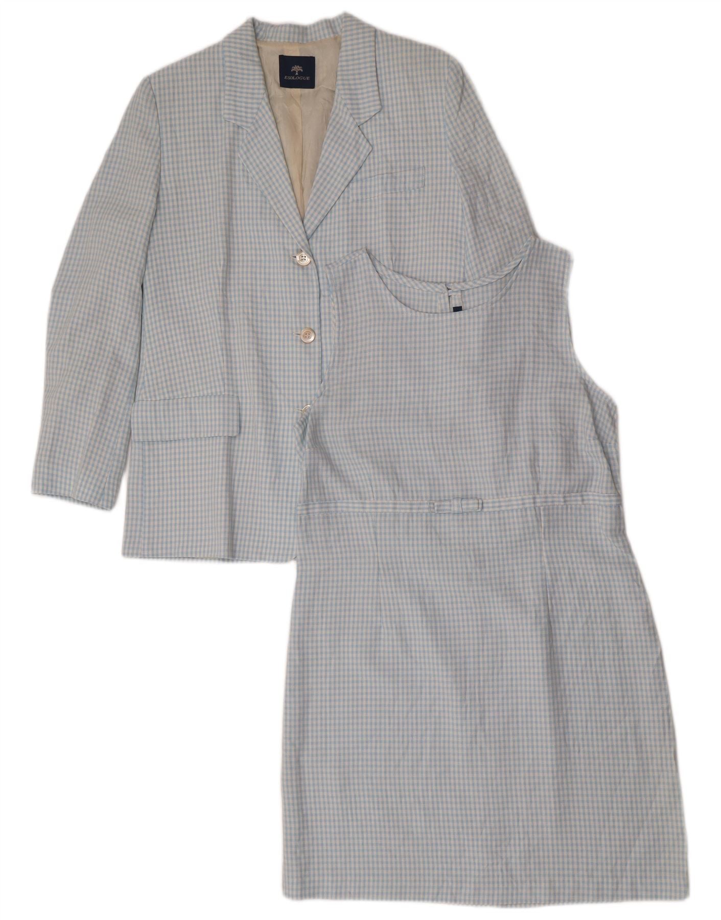 Set vintage da donna a 3 bottoni e 2 pezzi IT 46 grande viscosa blu a quadretti