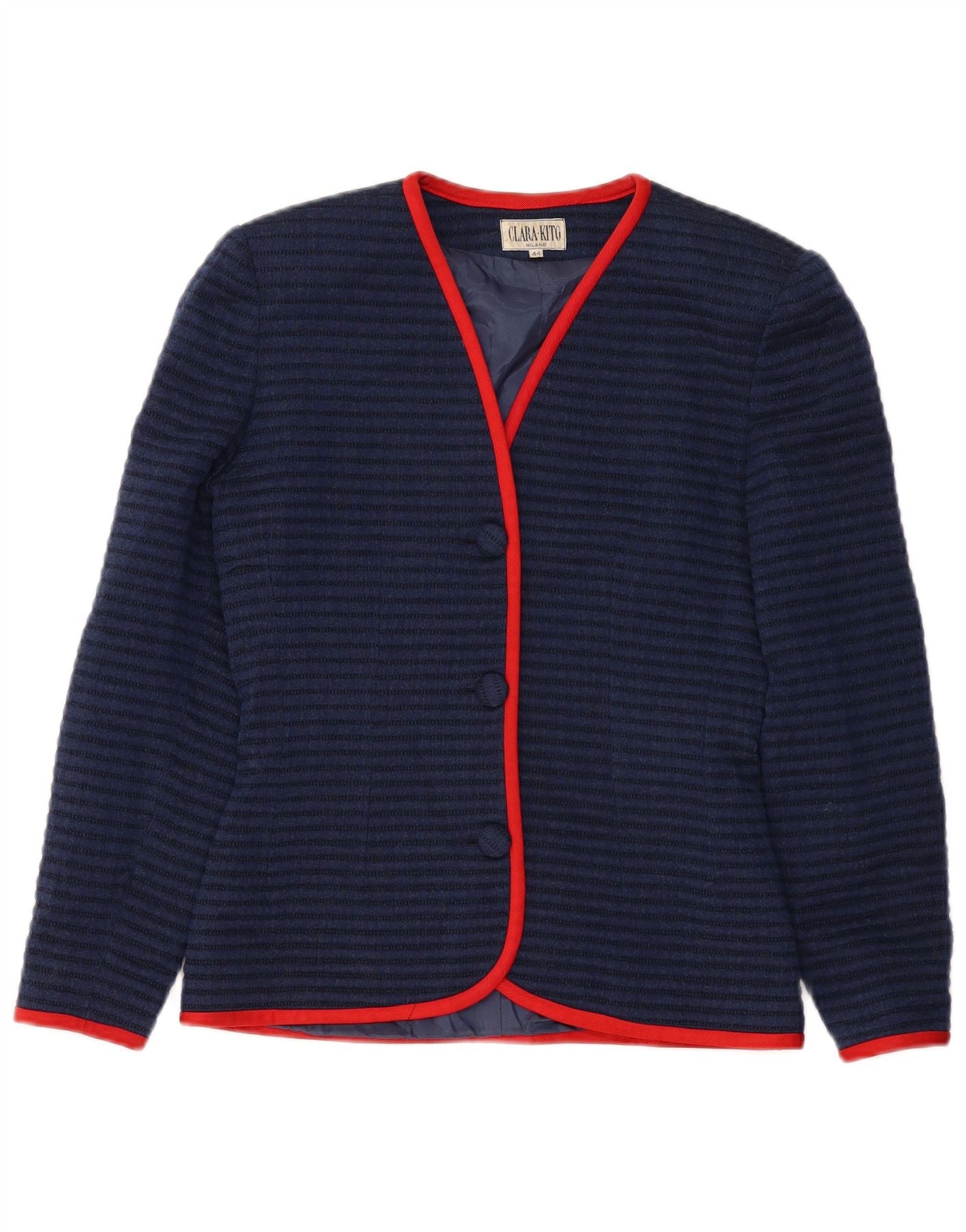 Giacca blazer da donna a 3 bottoni VINTAGE IT 44 medio blu navy a righe
