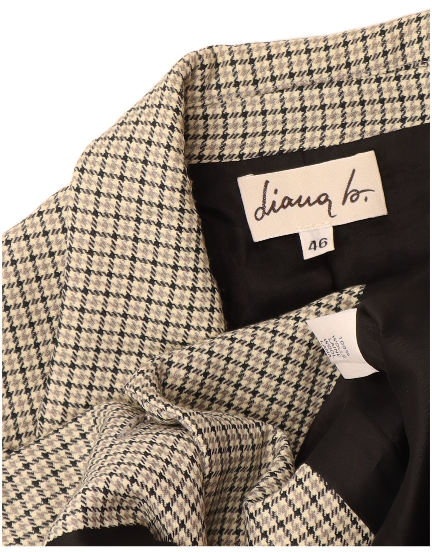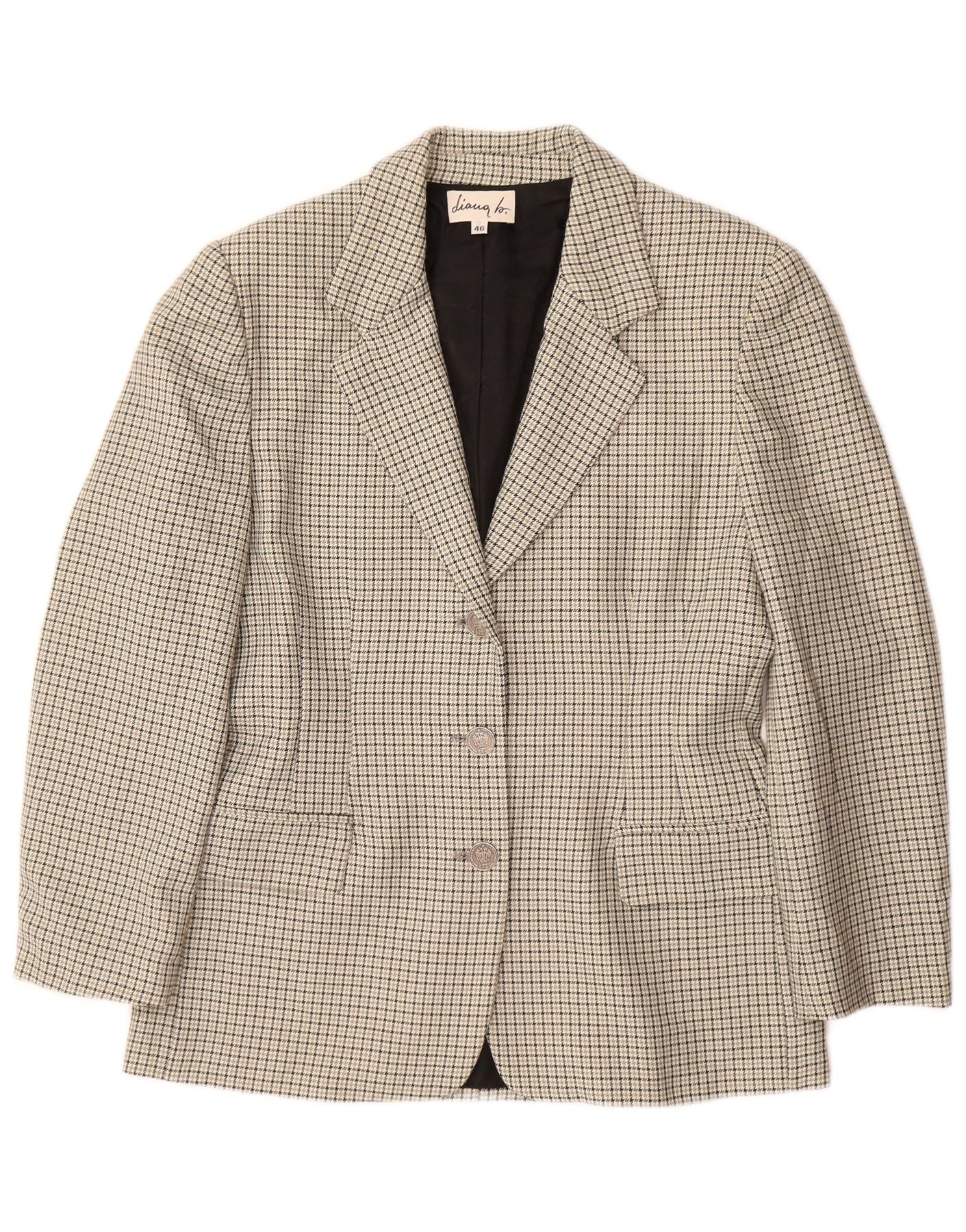 Giacca blazer da donna a 3 bottoni VINTAGE IT 46 grande lana pied de poule grigia