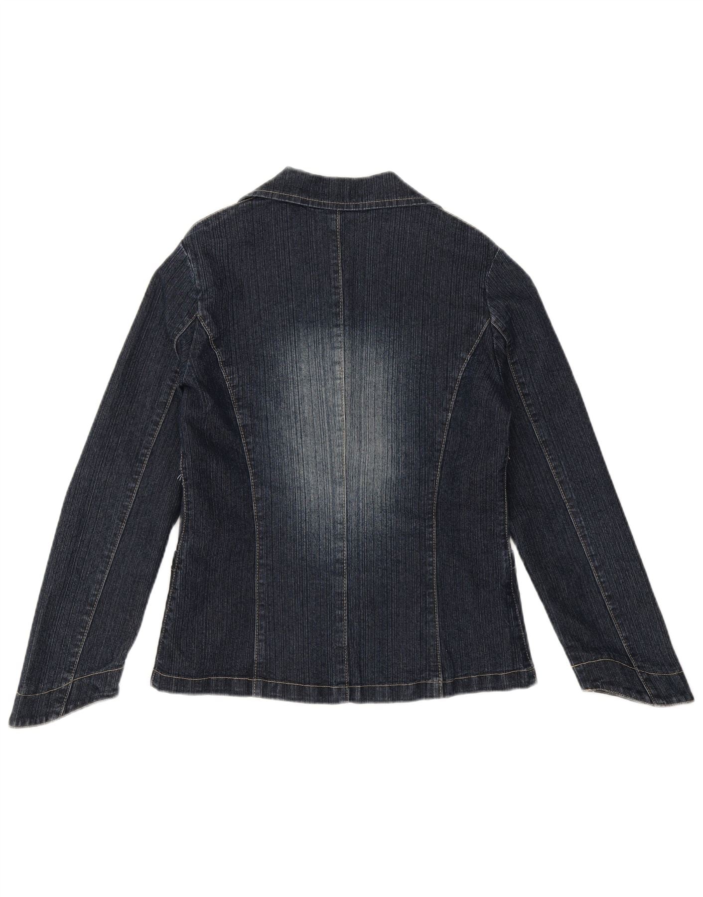 Giacca blazer in denim a 3 bottoni da donna VINTAGE UK 10 piccola in cotone blu navy