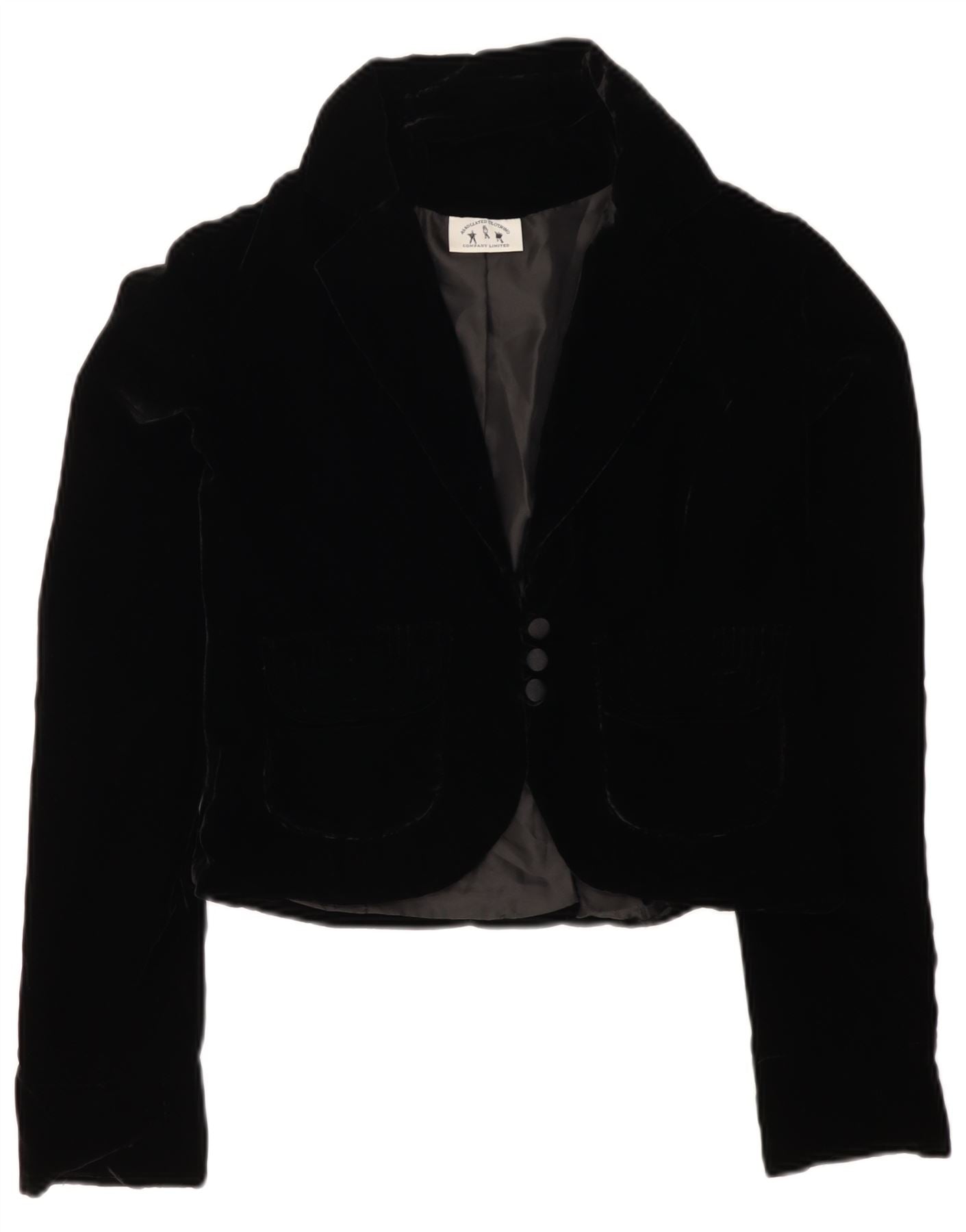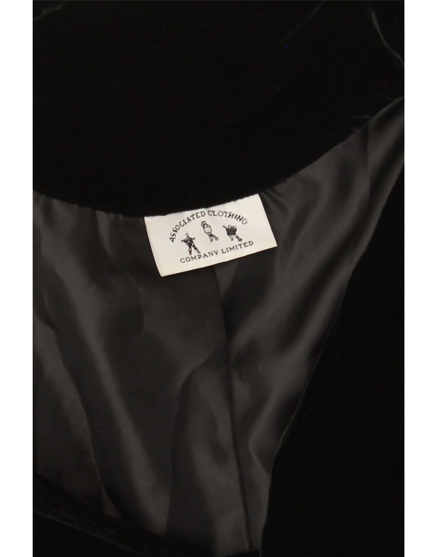 Giacca blazer in velluto da donna a 3 bottoni VINTAGE UK 12 media nera